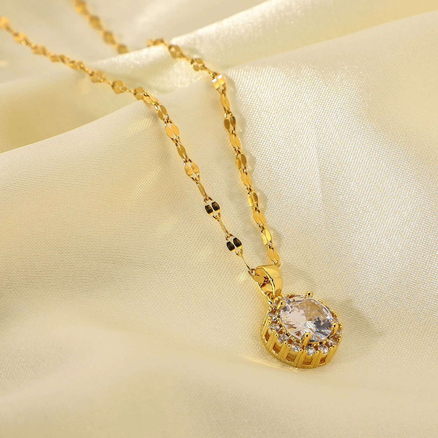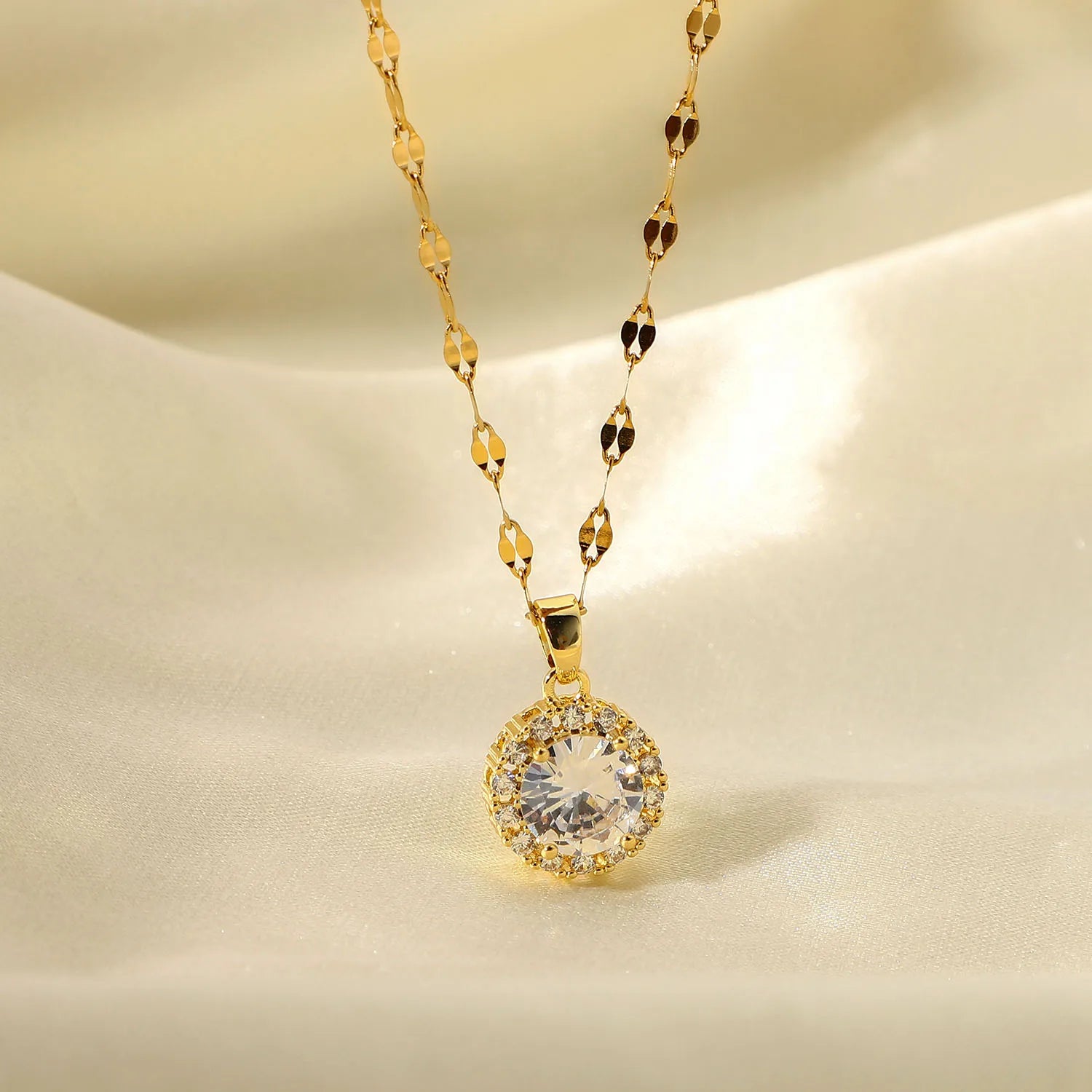 ステンレス304 ニッケルフリー 水に濡れても錆びにくい 18Kゴールドメッキ ネックレス ジルコニア 【YJ00662】
