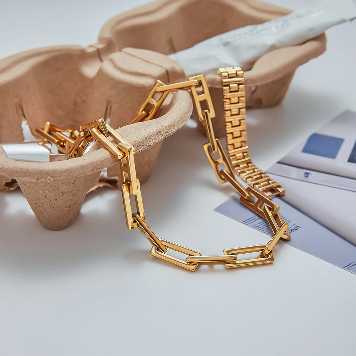 ステンレス304 ニッケルフリー 水に濡れても錆びにくい チャンキー チェーン ネックレス 【YJ00682】