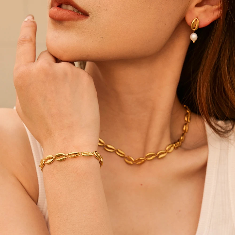 ステンレス304 ニッケルフリー 水に濡れても錆びにくい 18Kゴールドメッキ ネックレス シェル 貝殻 【YJ00753】