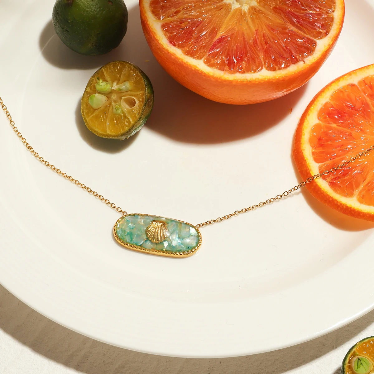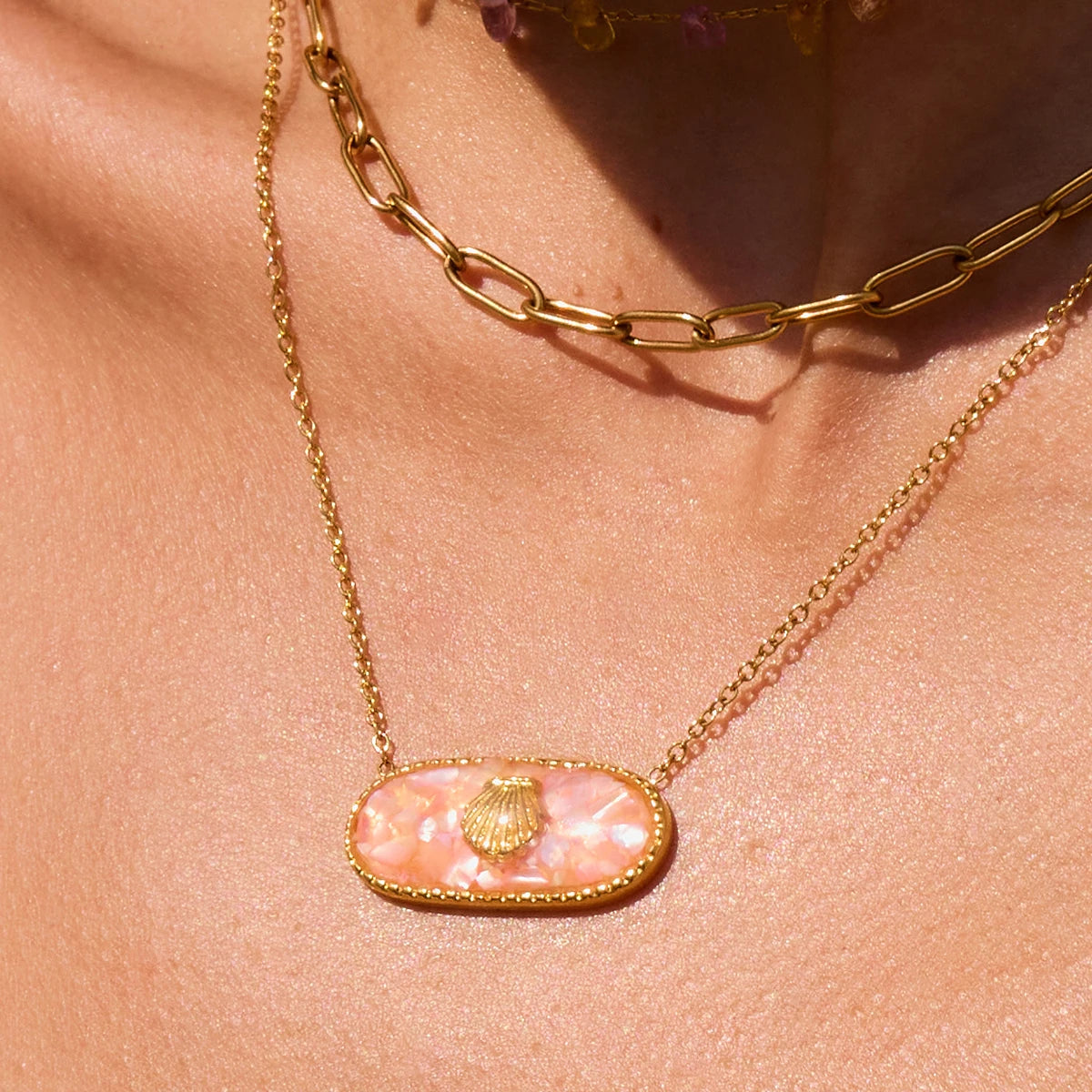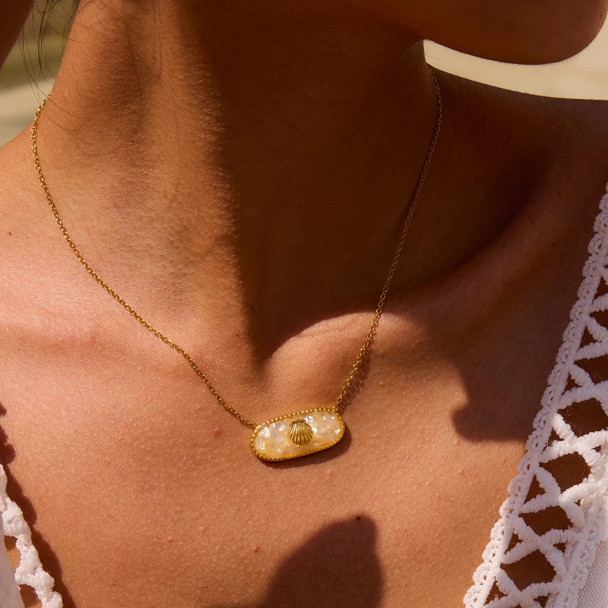 ステンレス304 ニッケルフリー 水に濡れても錆びにくい 18Kゴールドメッキ ネックレス シェル 貝殻 【YJ00851】