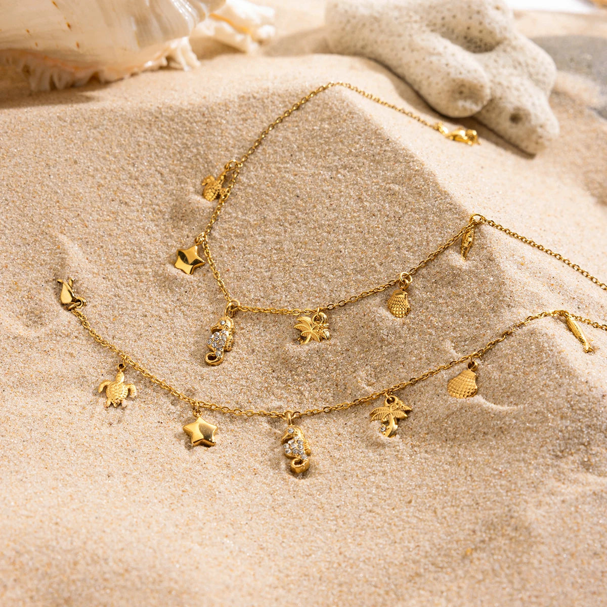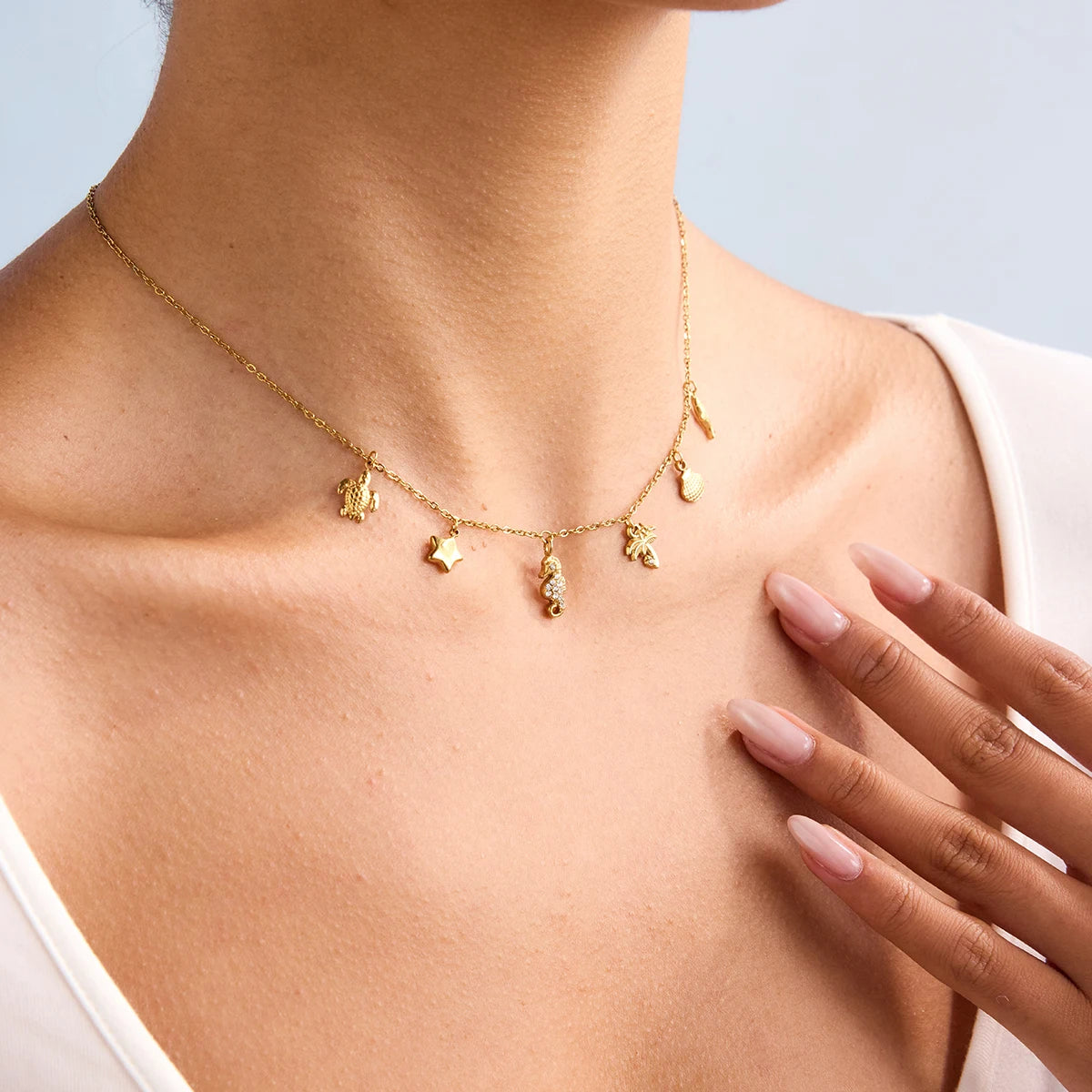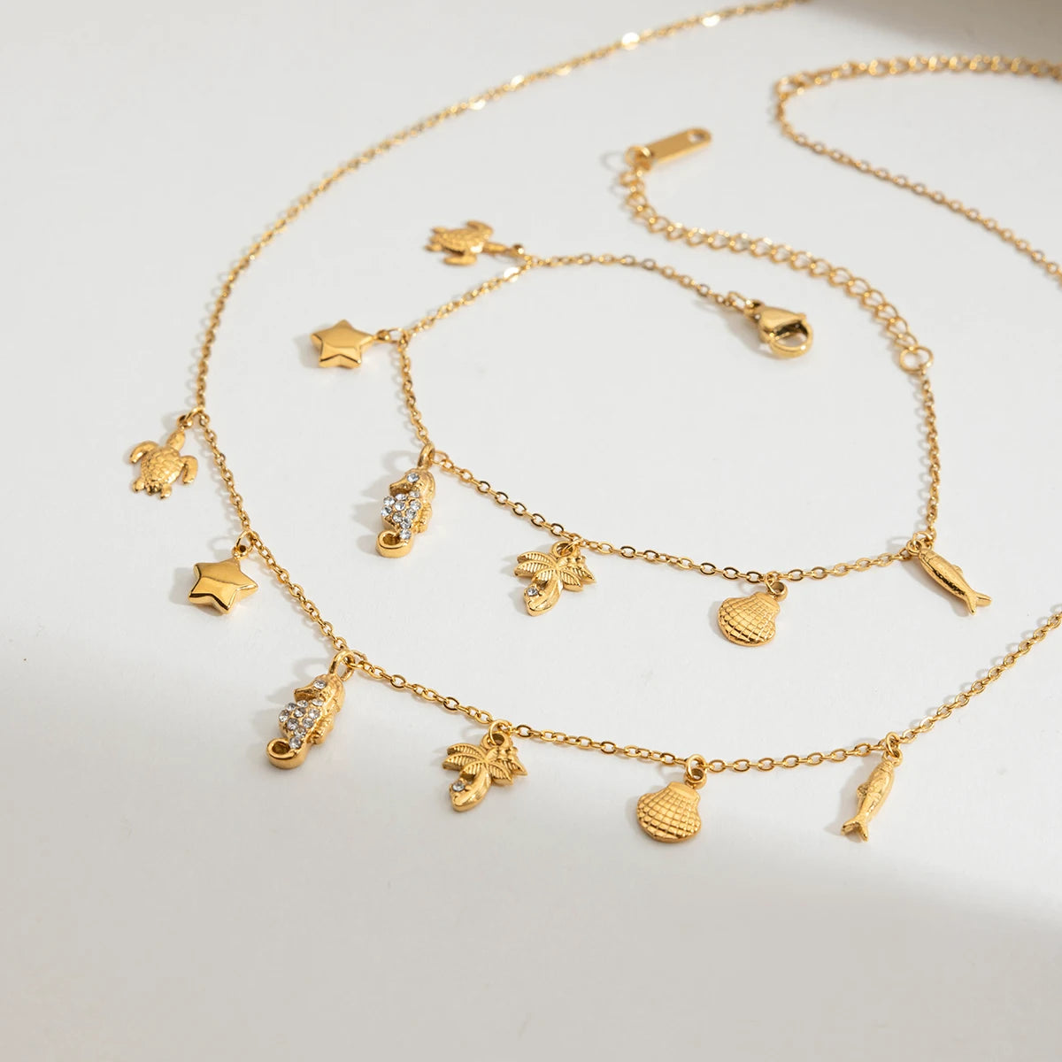 ステンレス304 低ニッケル 水に濡れても錆びにくい 18Kゴールドメッキ ネックレス チャーム 【YJ01097】