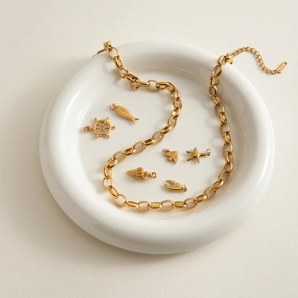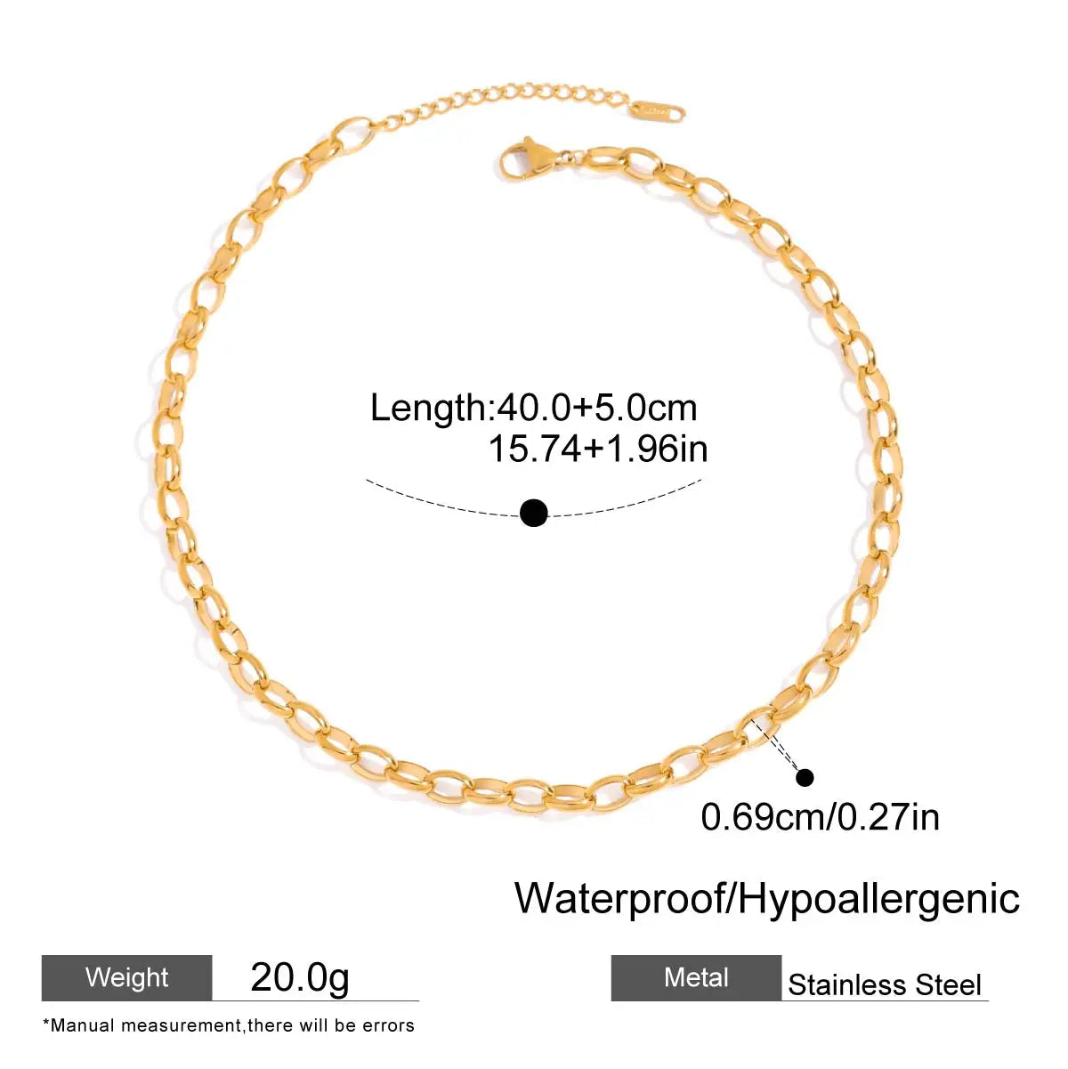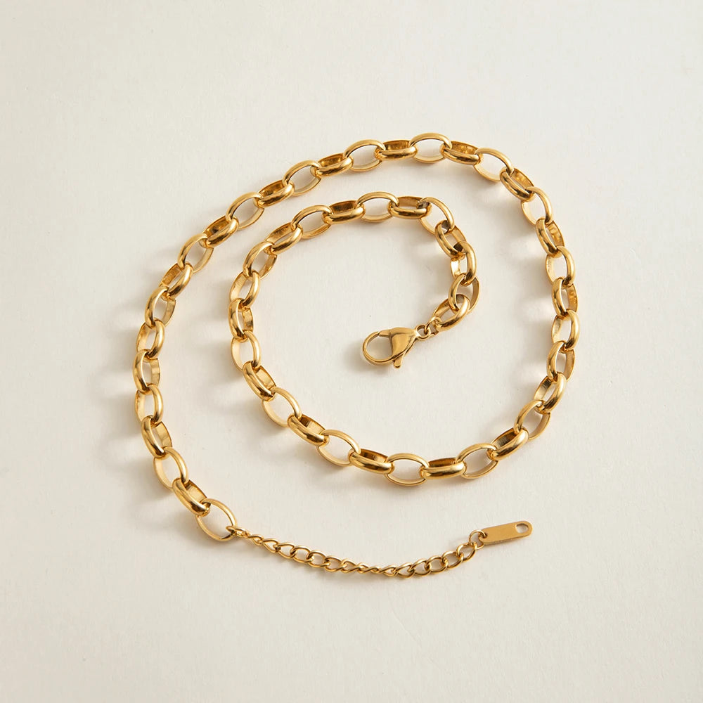 ステンレス304 低ニッケル 水に濡れても錆びにくい 18Kゴールドメッキ ネックレス【YJ01298】