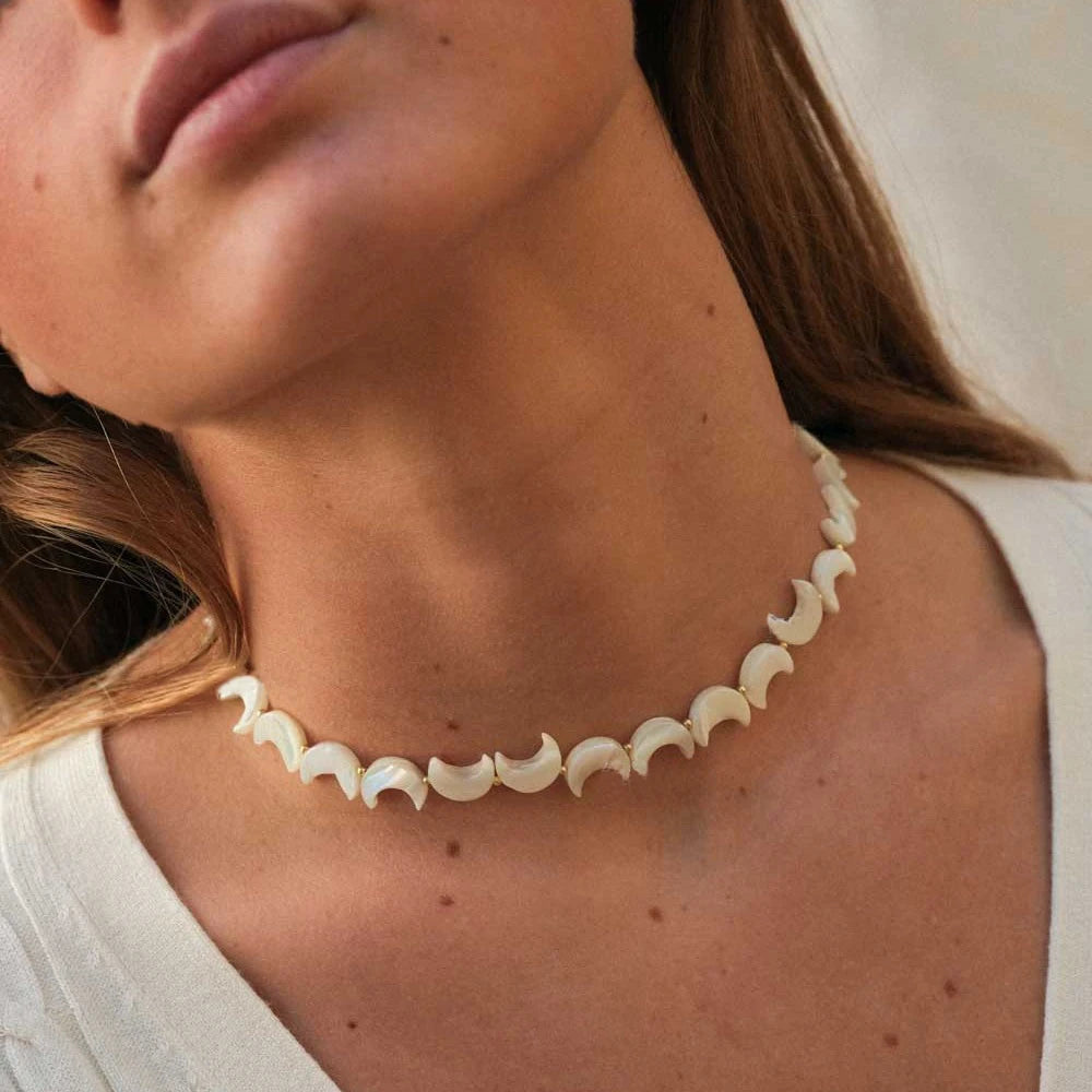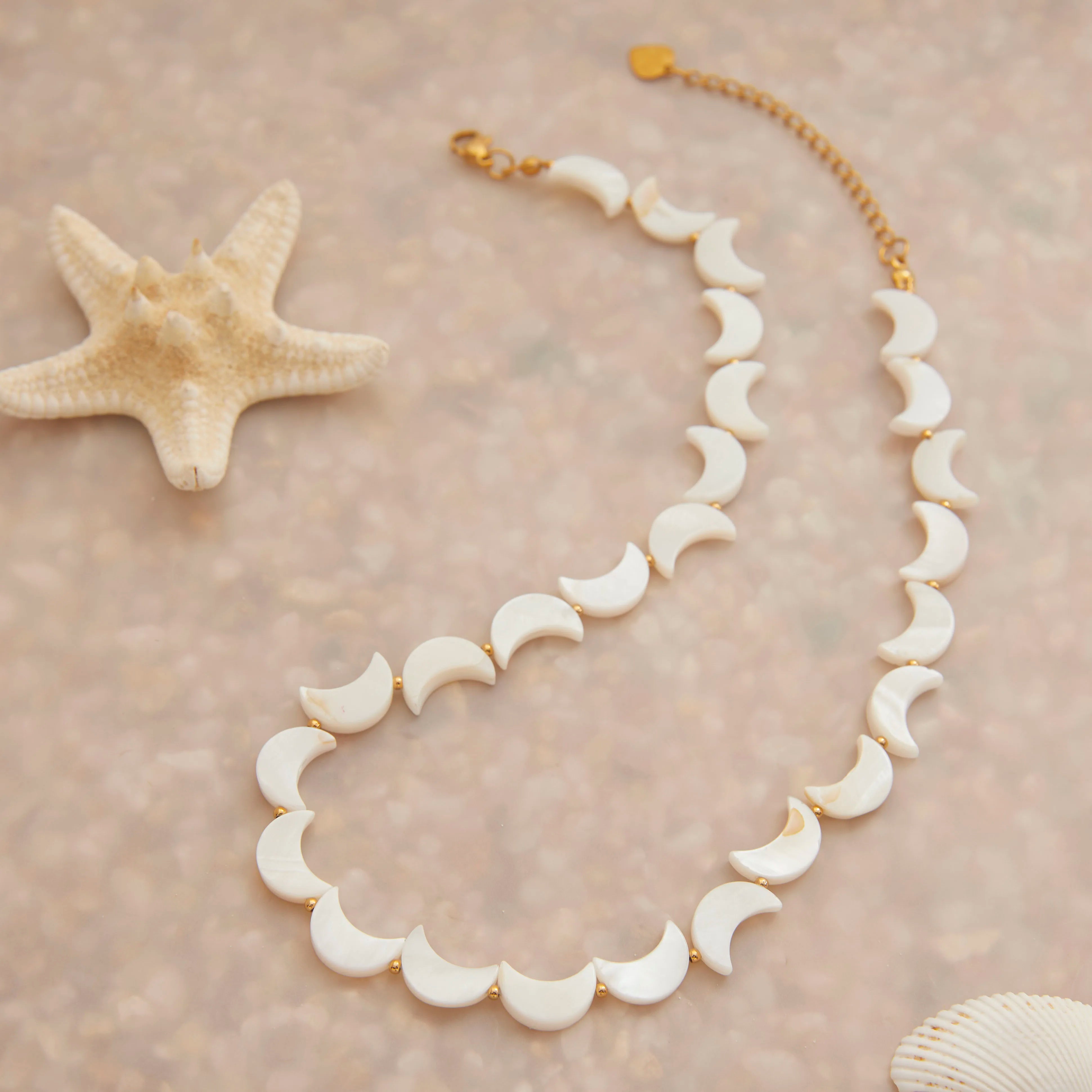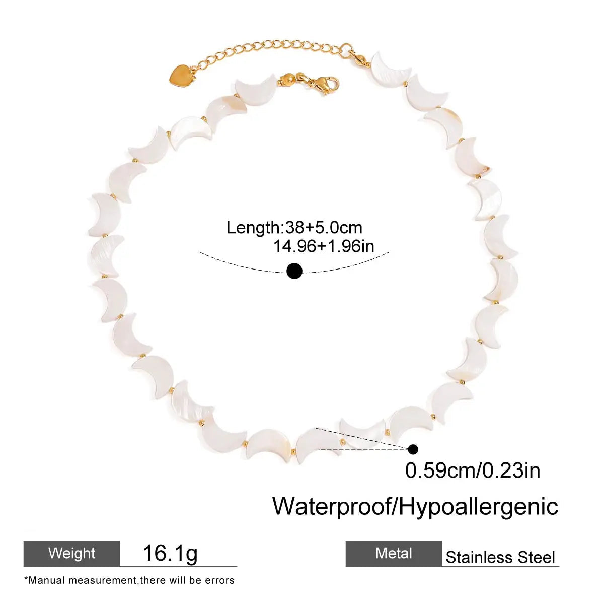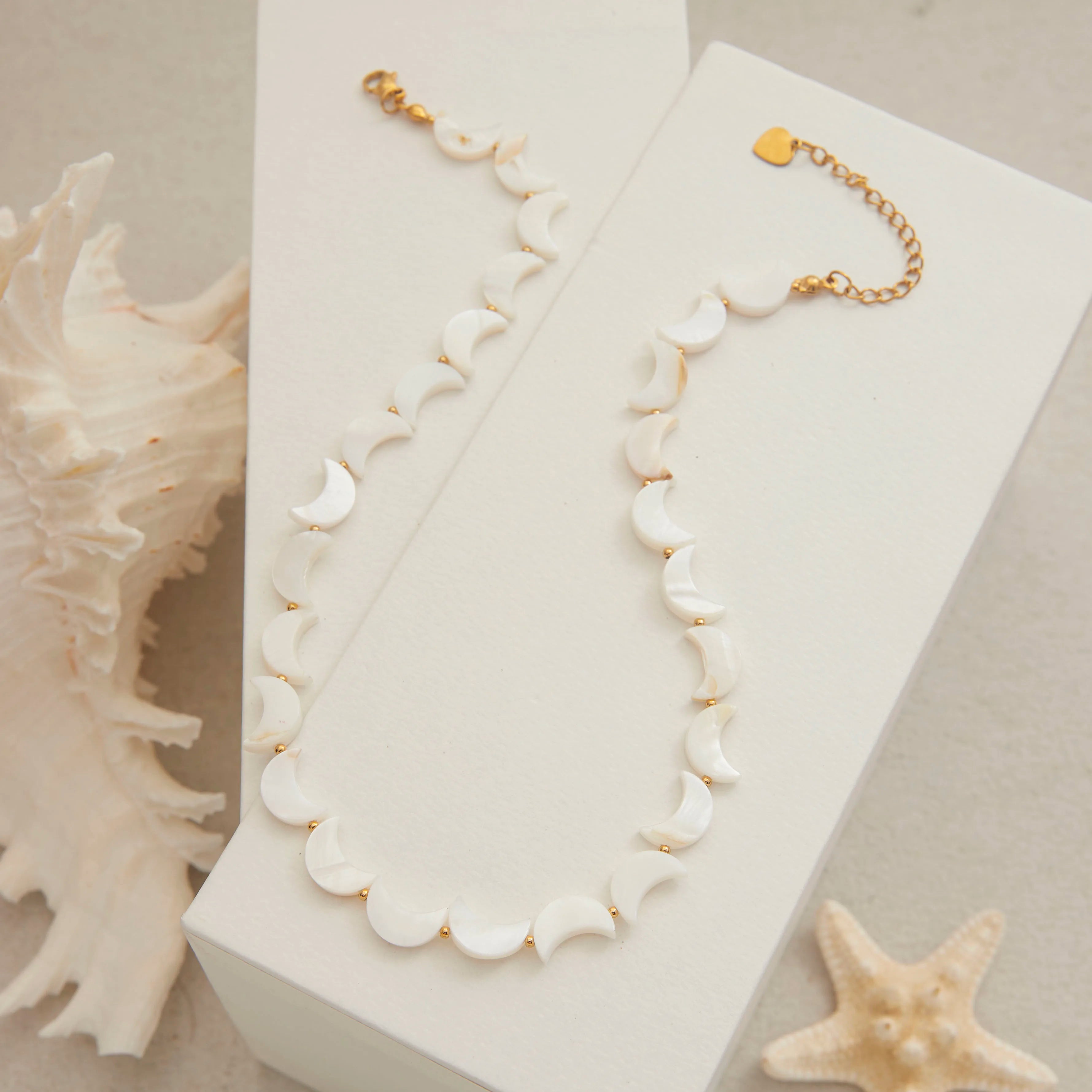 ステンレス304 低ニッケル 水に濡れても錆びにくい 18Kゴールドメッキ ネックレス シェル 月 【YJ01530】
