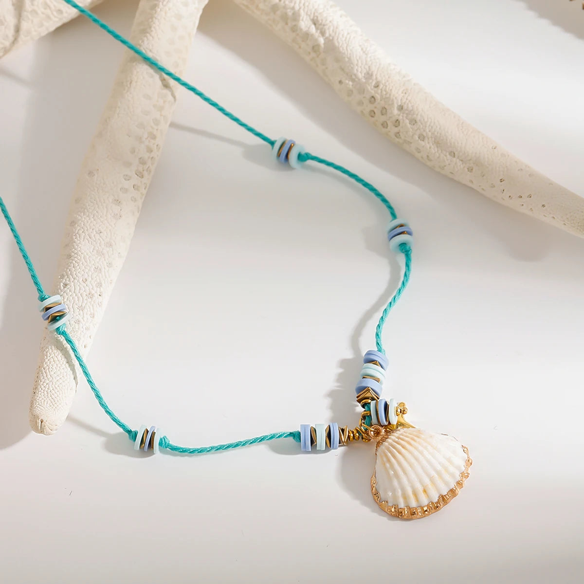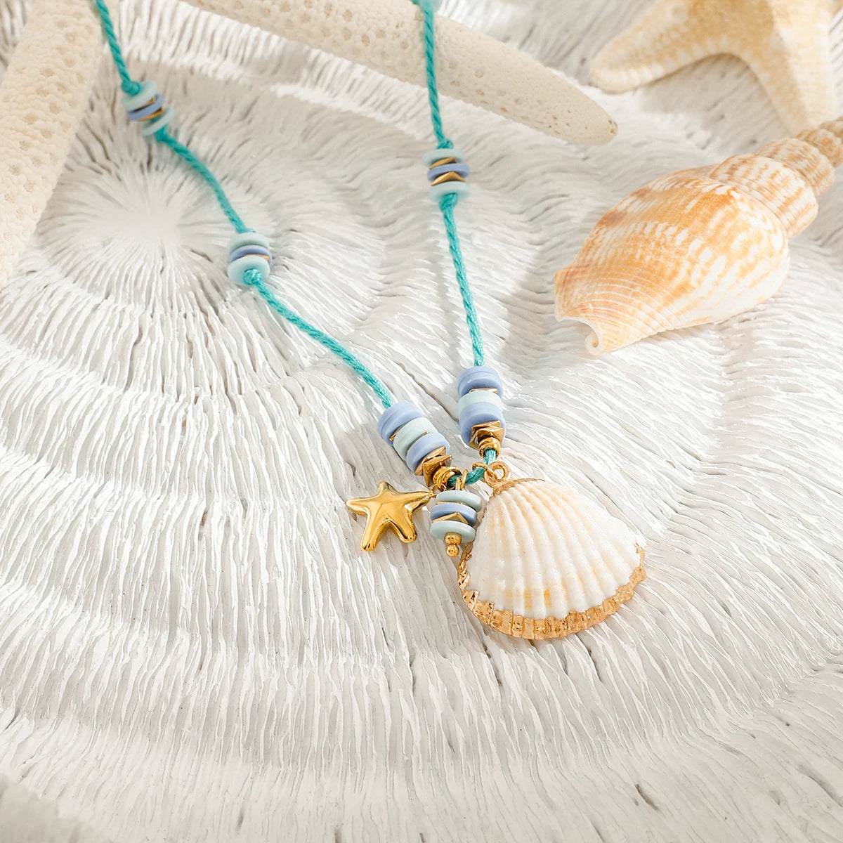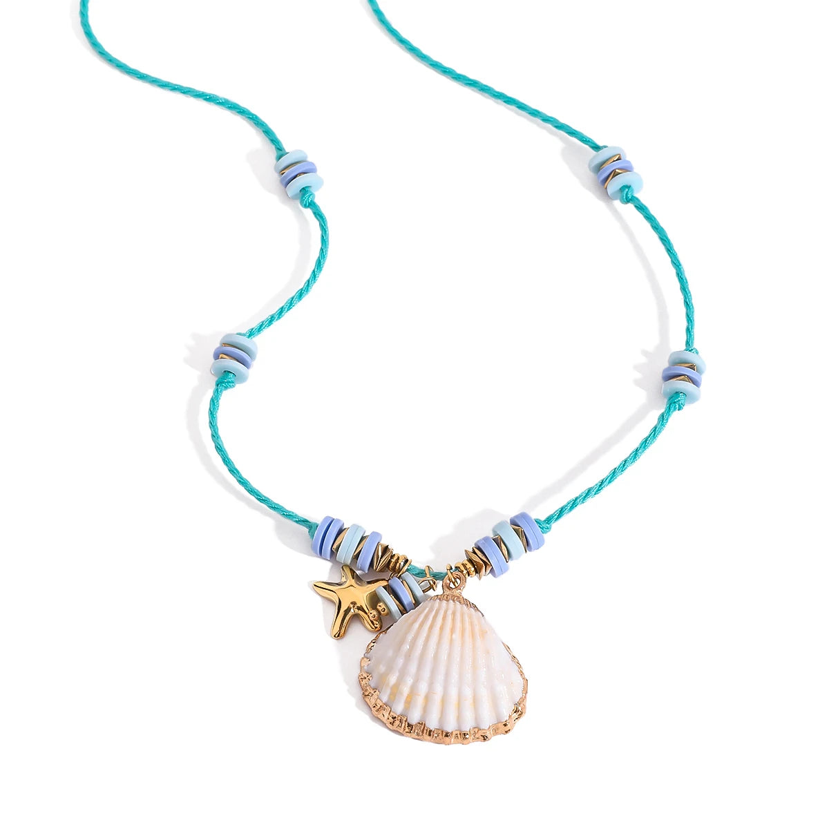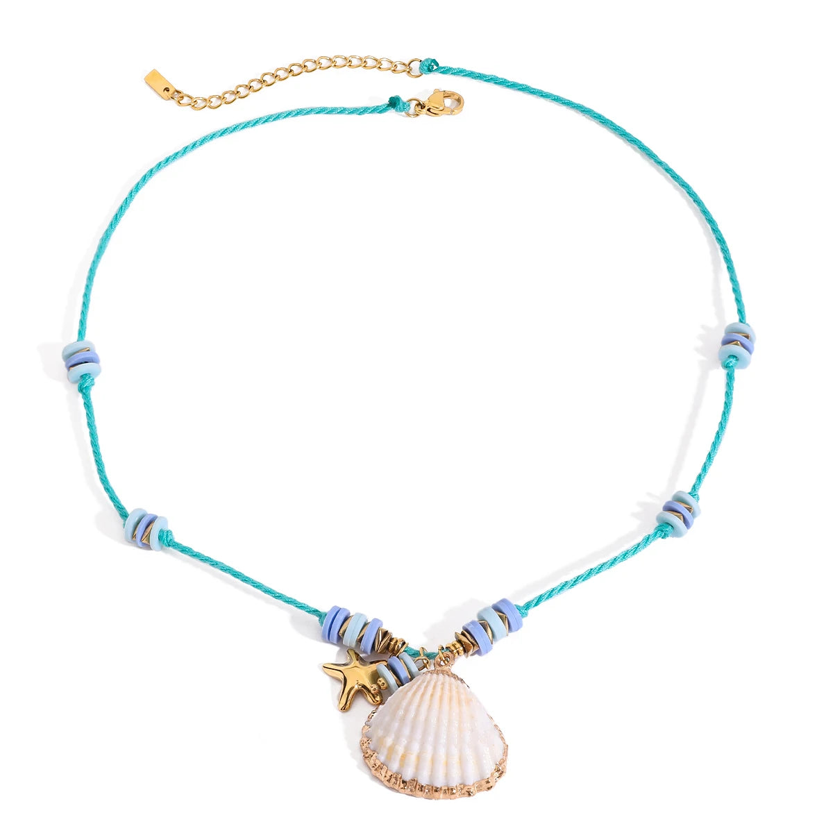 ステンレス304 低ニッケル 水に濡れても錆びにくい 18Kゴールドメッキ ネックレス シェル 貝殻 【YJ01576】