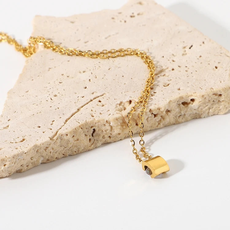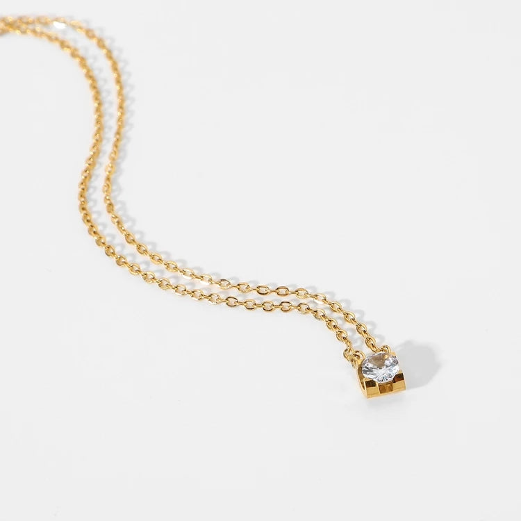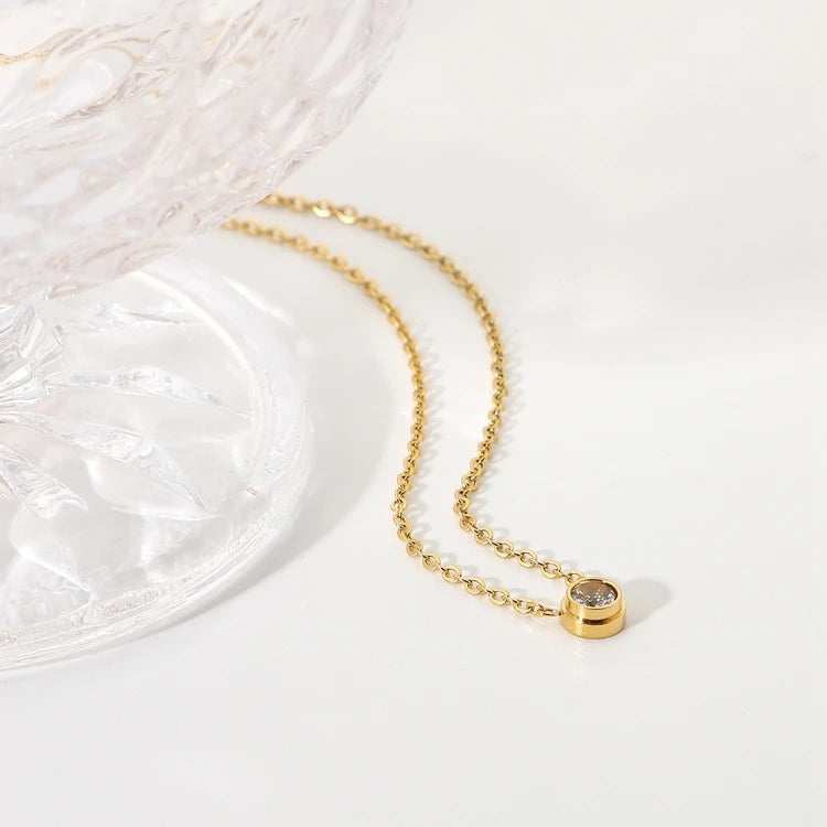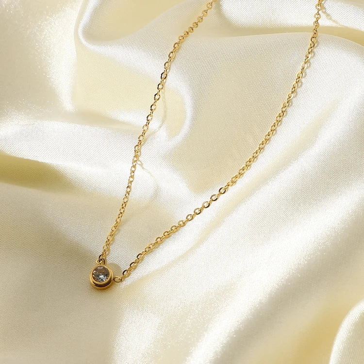 ステンレス304 低ニッケル 水に濡れても錆びにくい 18Kゴールドメッキ ネックレス ジルコニア 【YJ01593】