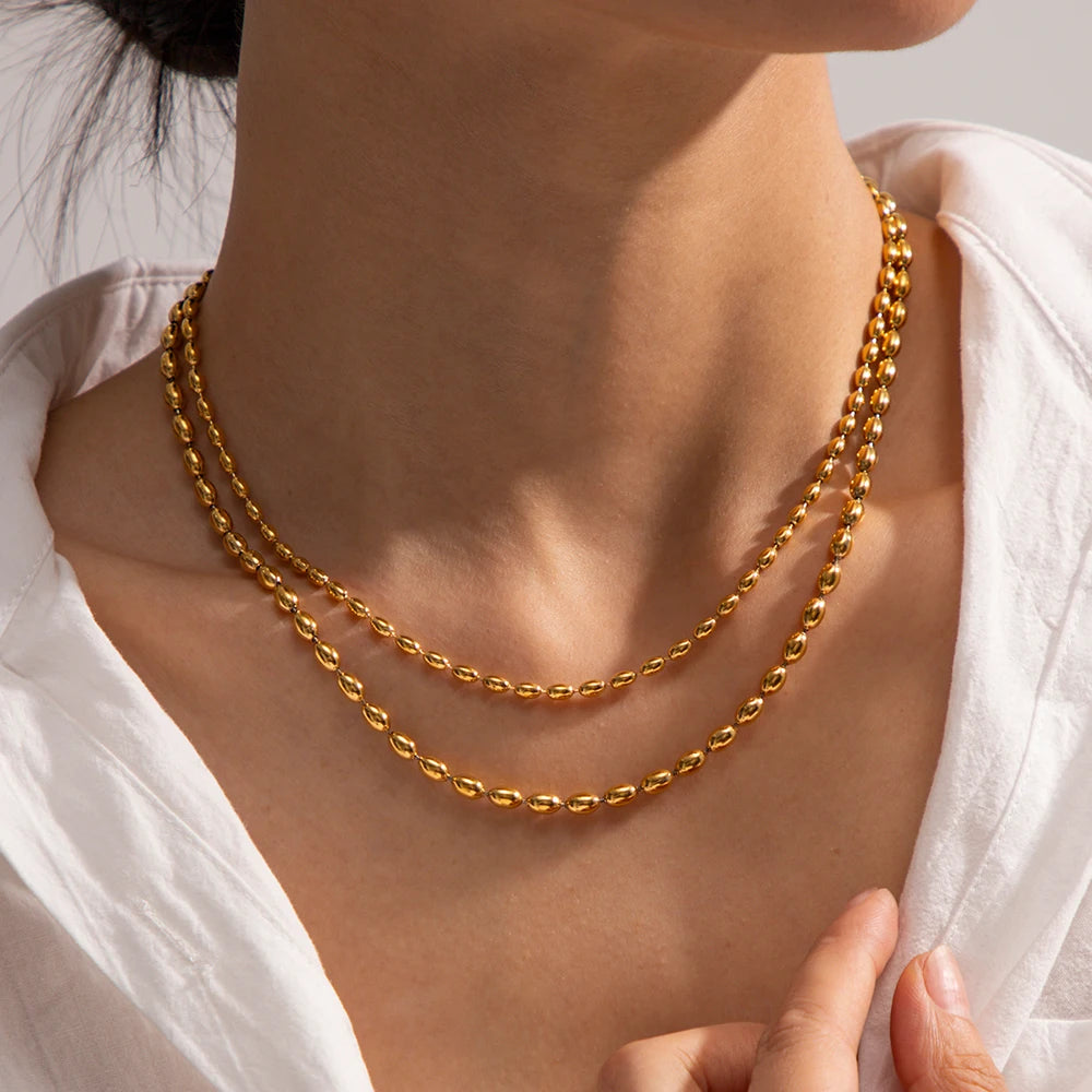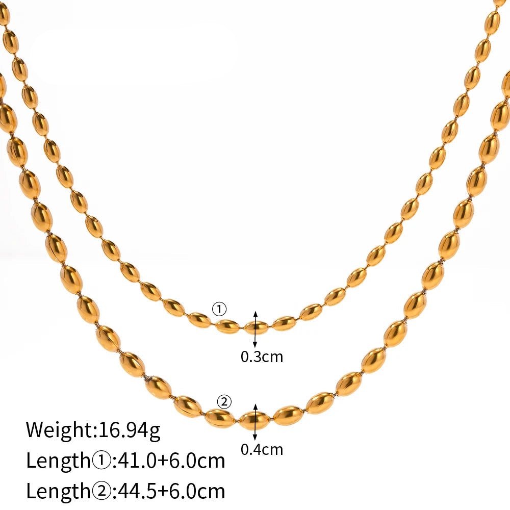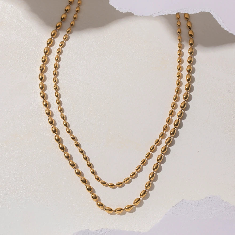 ステンレス304 低ニッケル 水に濡れても錆びにくい 18Kゴールドメッキ ネックレス 2連 チェーン 【YJ01804】
