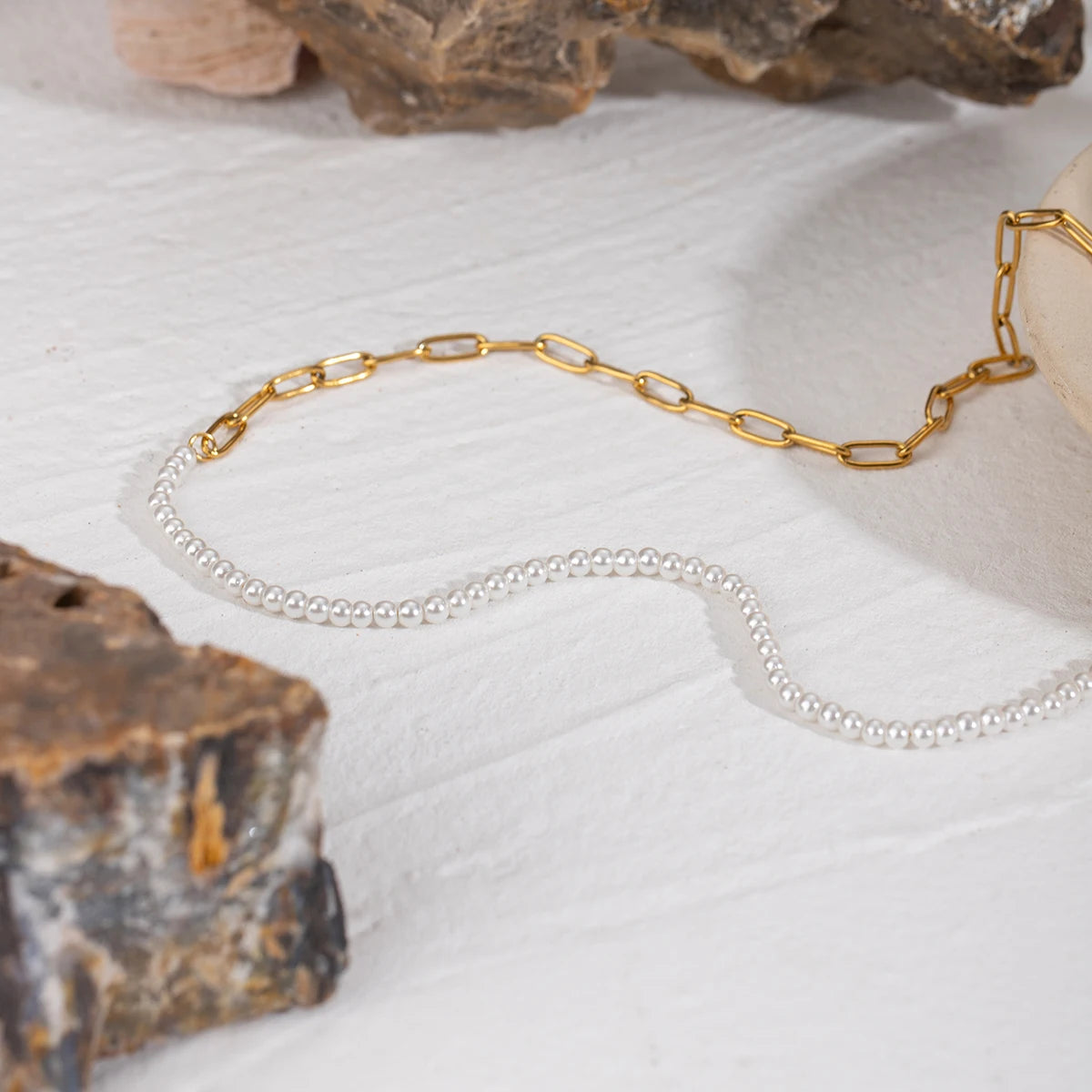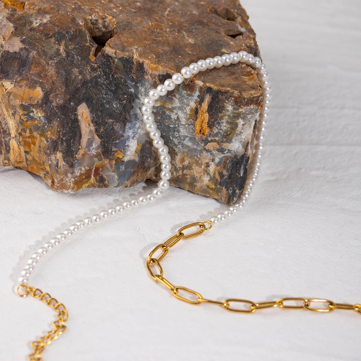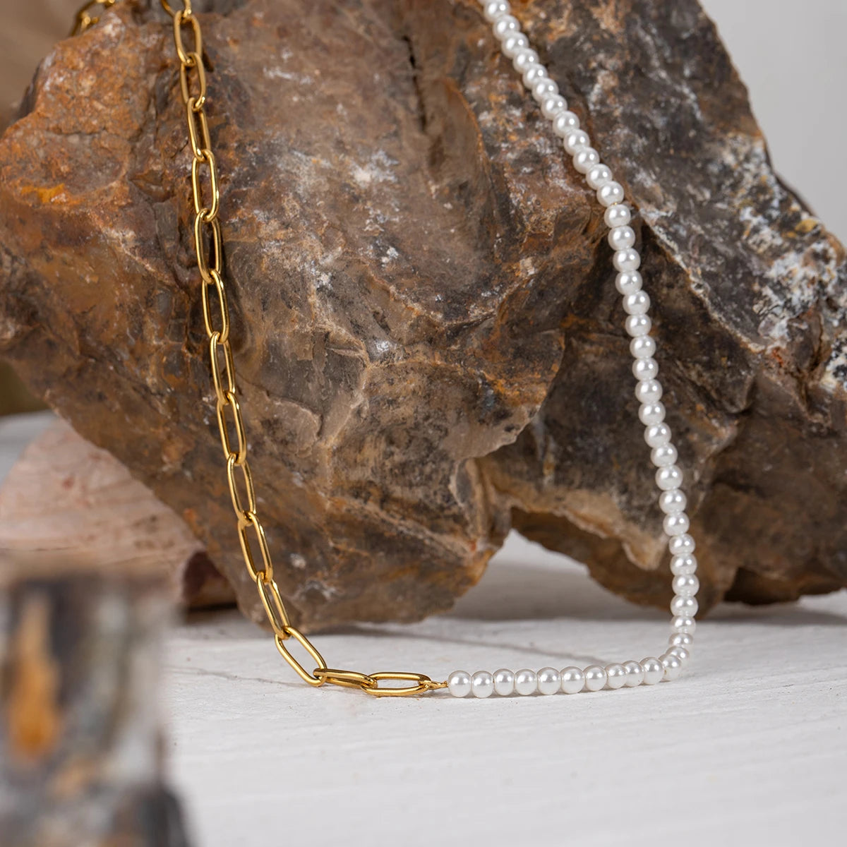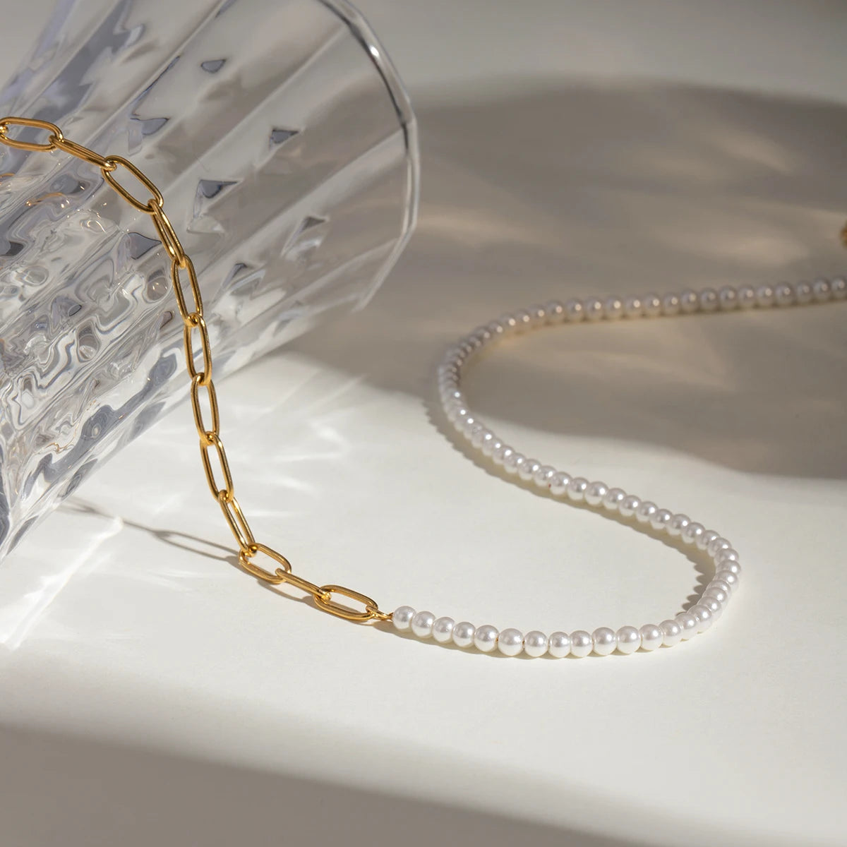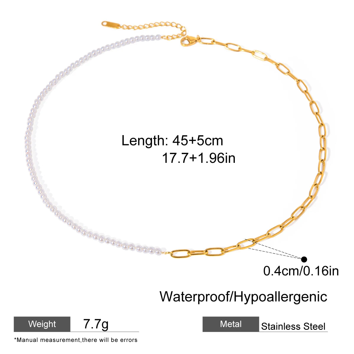 ステンレス304 低ニッケル 水に濡れても錆びにくい 18Kゴールドメッキ ネックレス チェーン パール 【YJ01837】