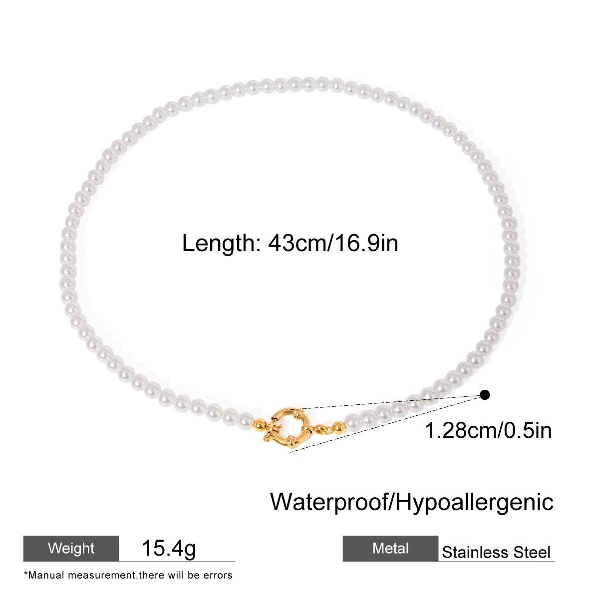 ステンレス304 低ニッケル 水に濡れても錆びにくい 18Kゴールドメッキ ネックレス パール 【YJ01839】