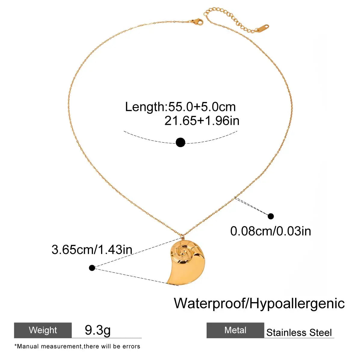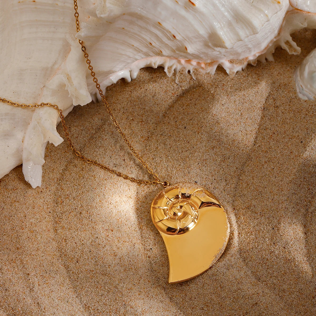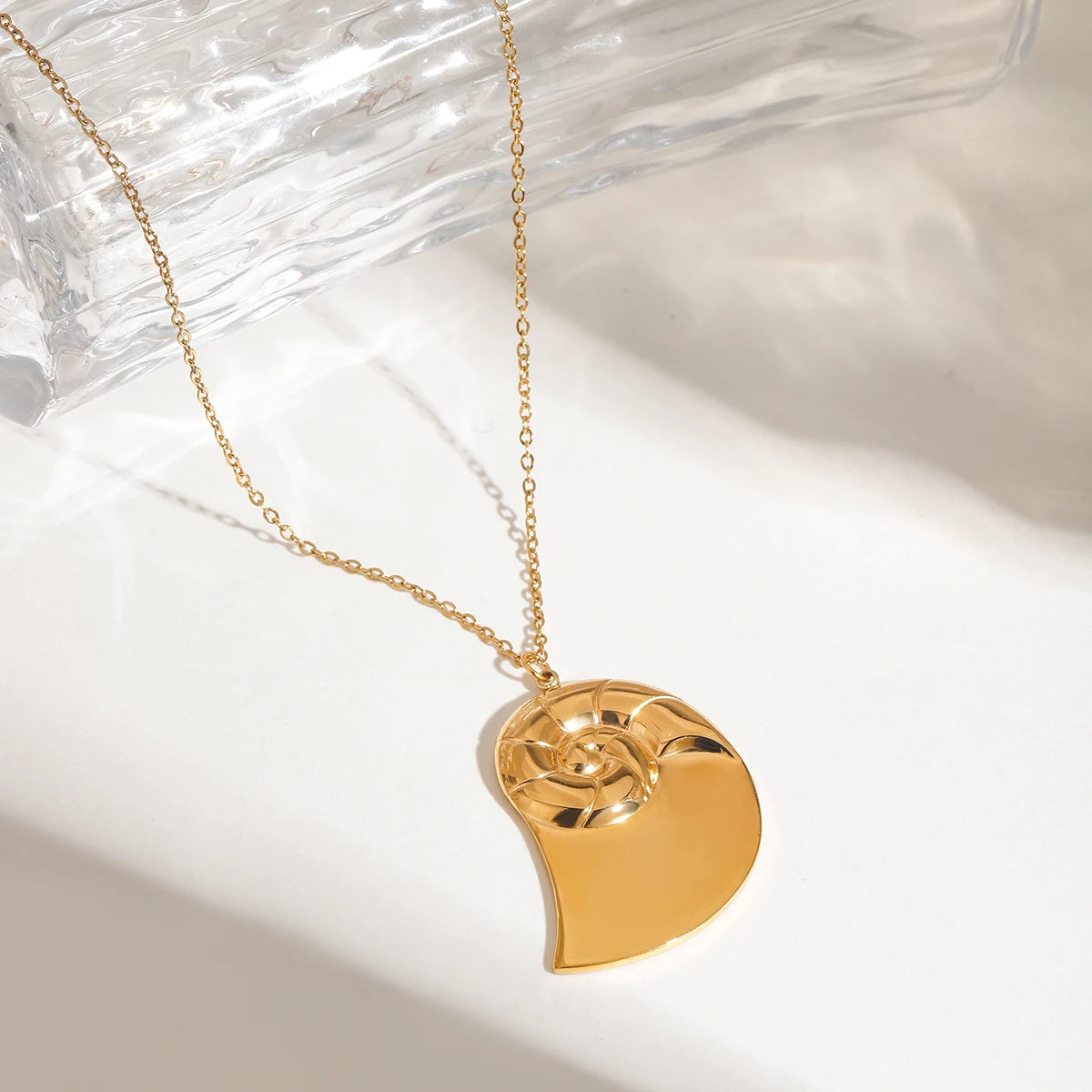 ステンレス304 低ニッケル 水に濡れても錆びにくい 18Kゴールドメッキ ネックレス アンモナイト 【YJ01987】