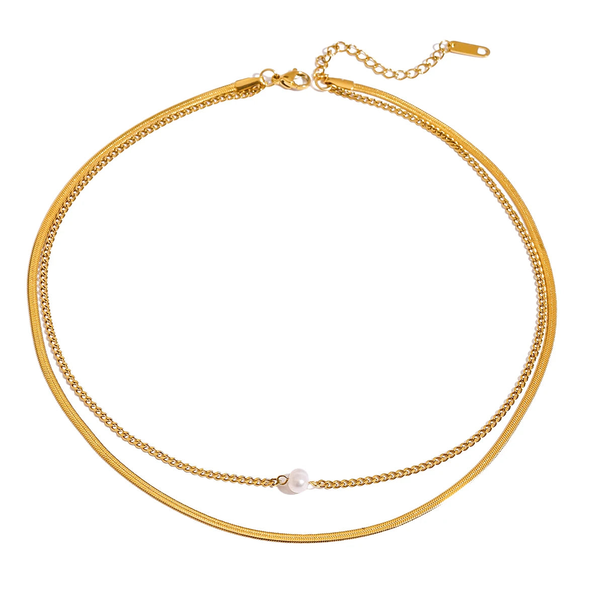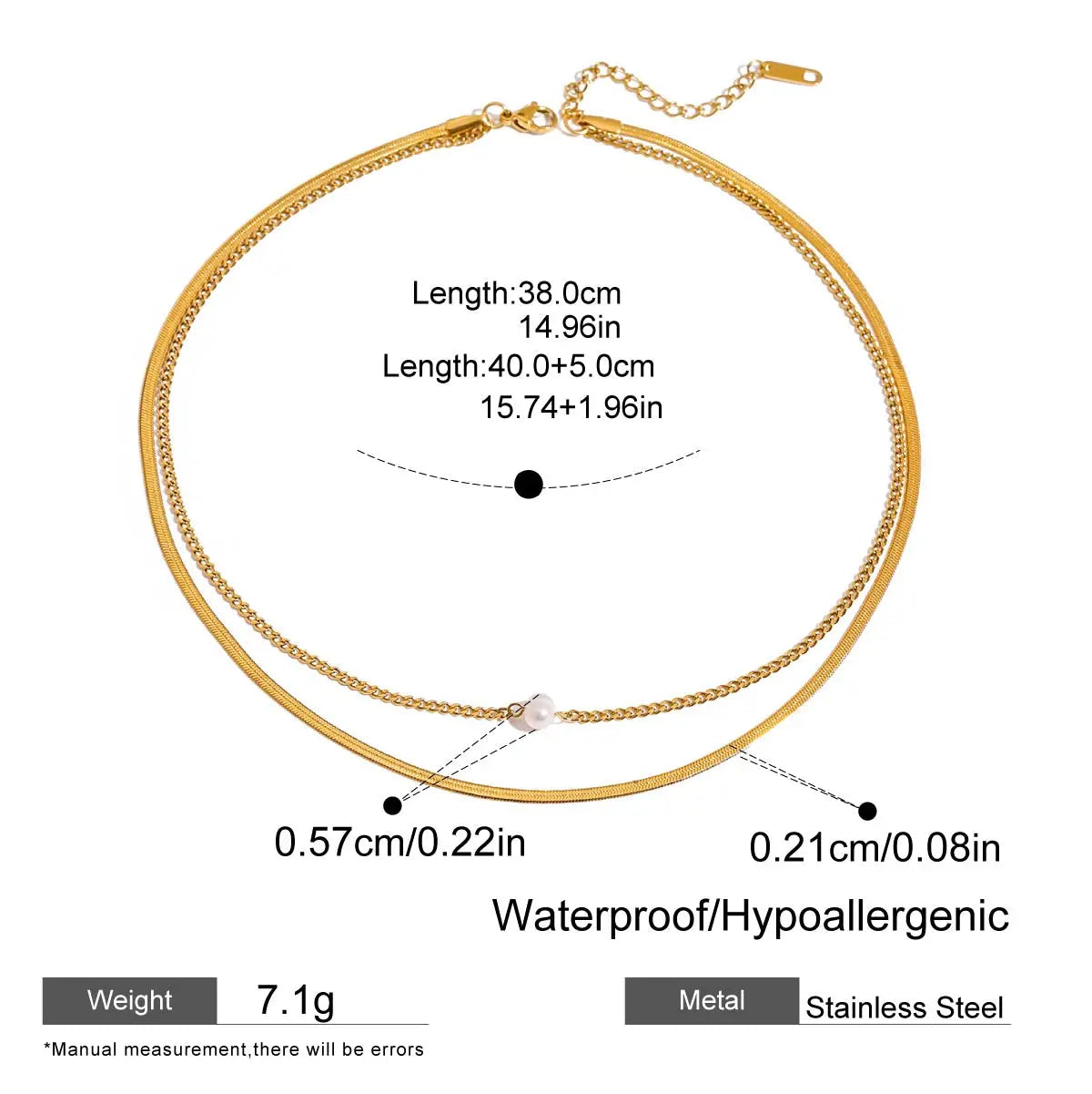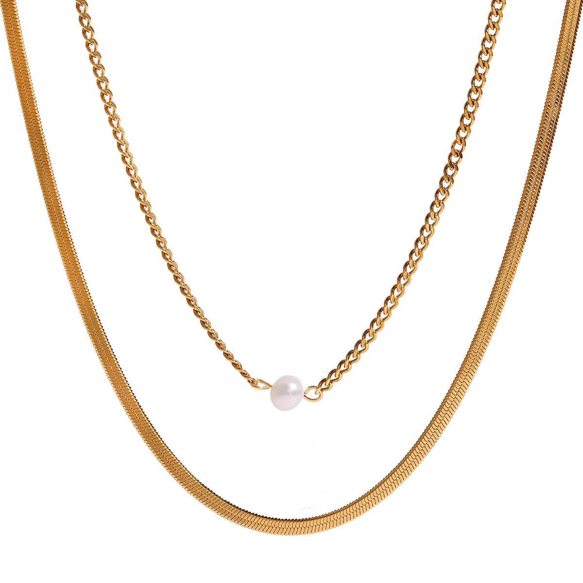 ステンレス304 低ニッケル 水に濡れても錆びにくい 18Kゴールドメッキ ネックレス 2連 【YJ02019】