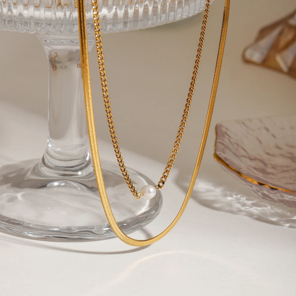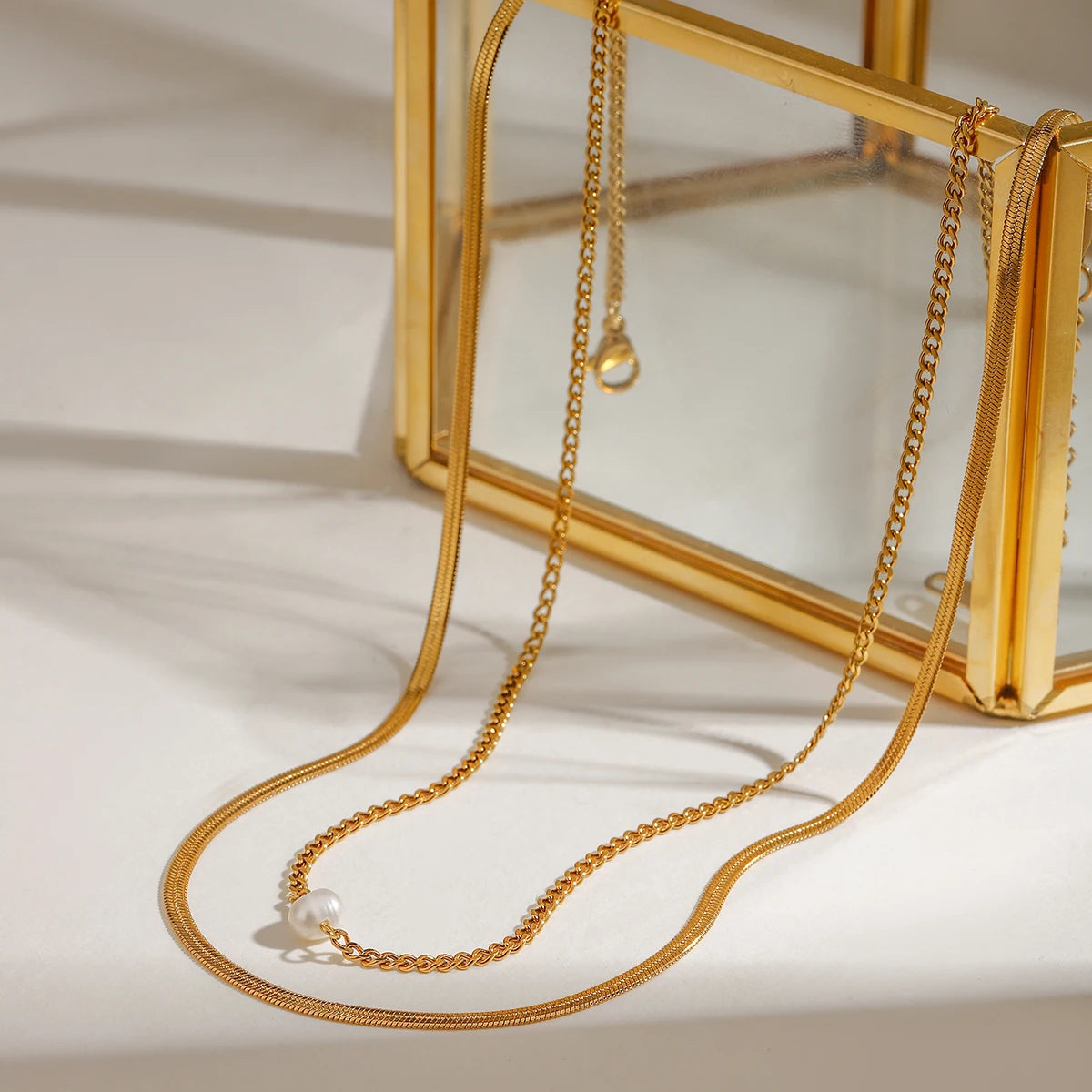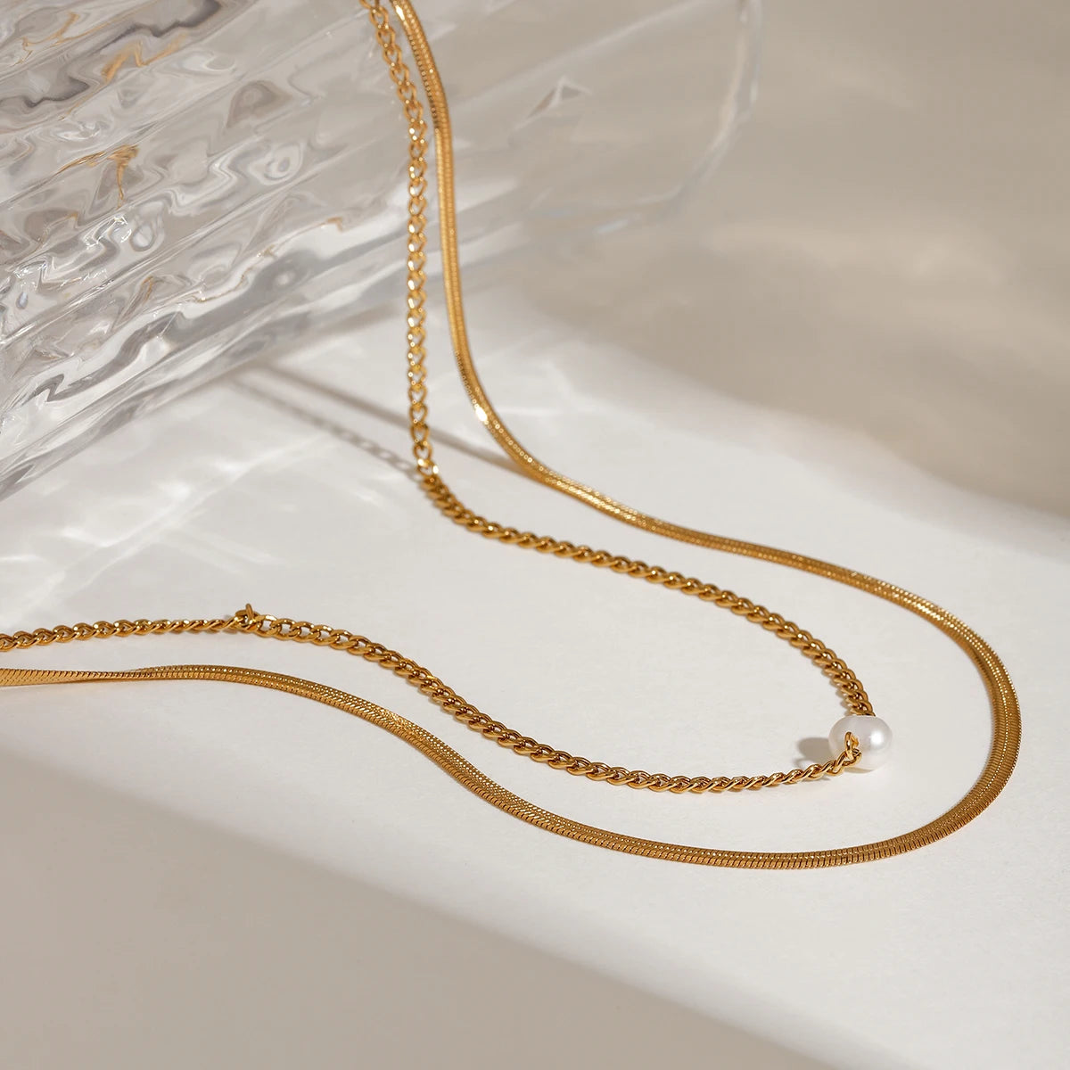 ステンレス304 低ニッケル 水に濡れても錆びにくい 18Kゴールドメッキ ネックレス 2連 【YJ02019】