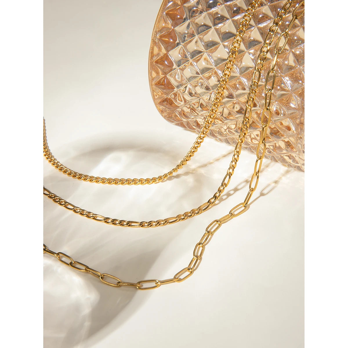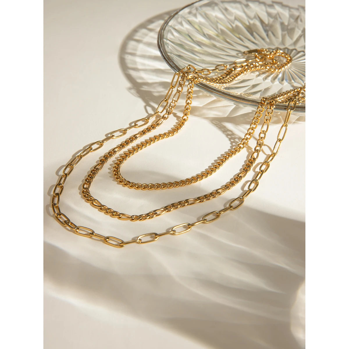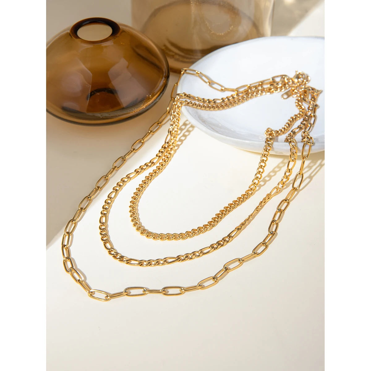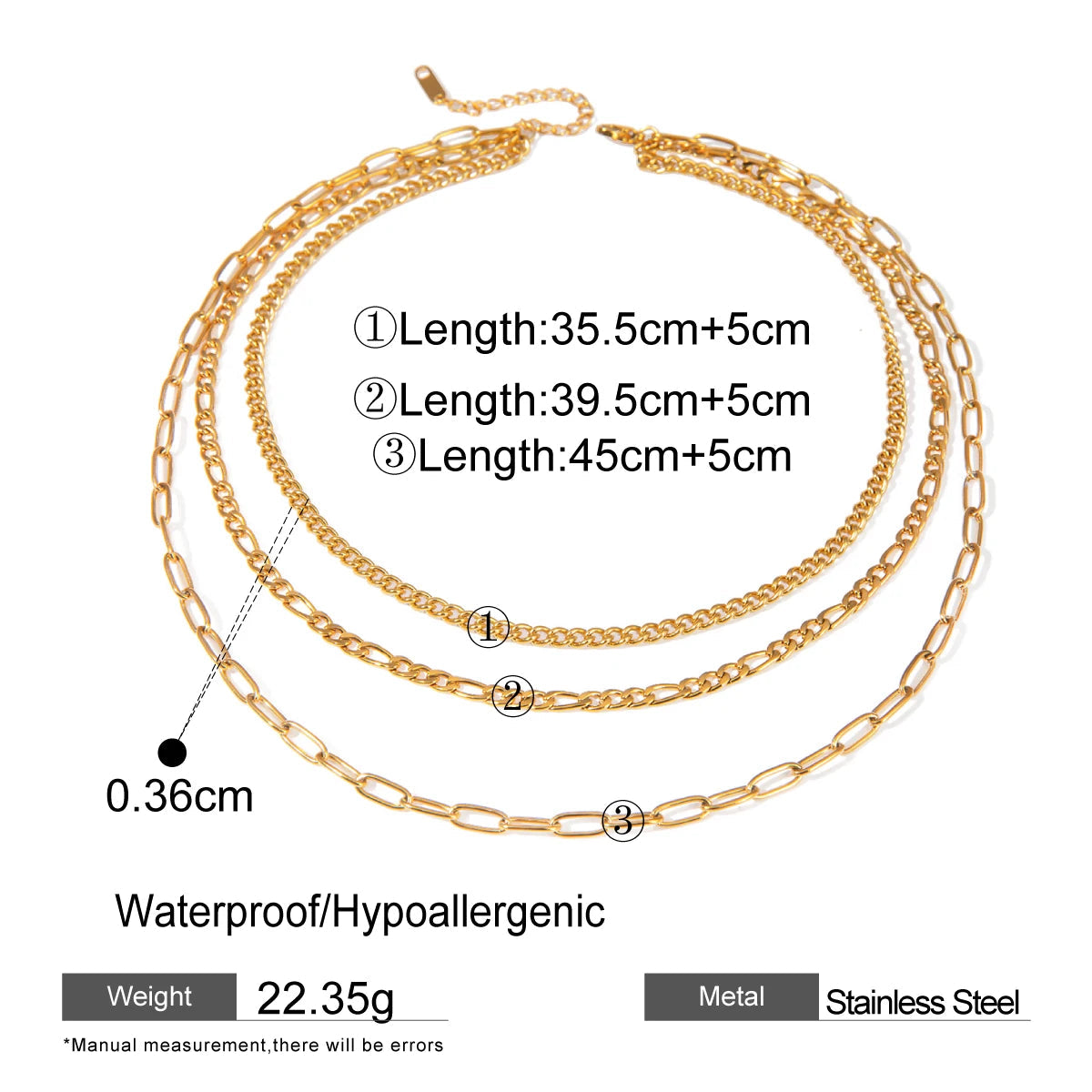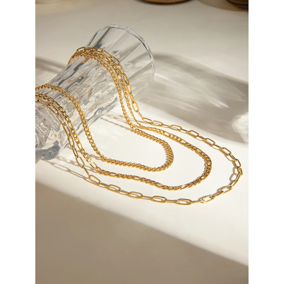 ステンレス304 低ニッケル 水に濡れても錆びにくい 18Kゴールドメッキ ネックレス チェーン 3連【YJ02147】