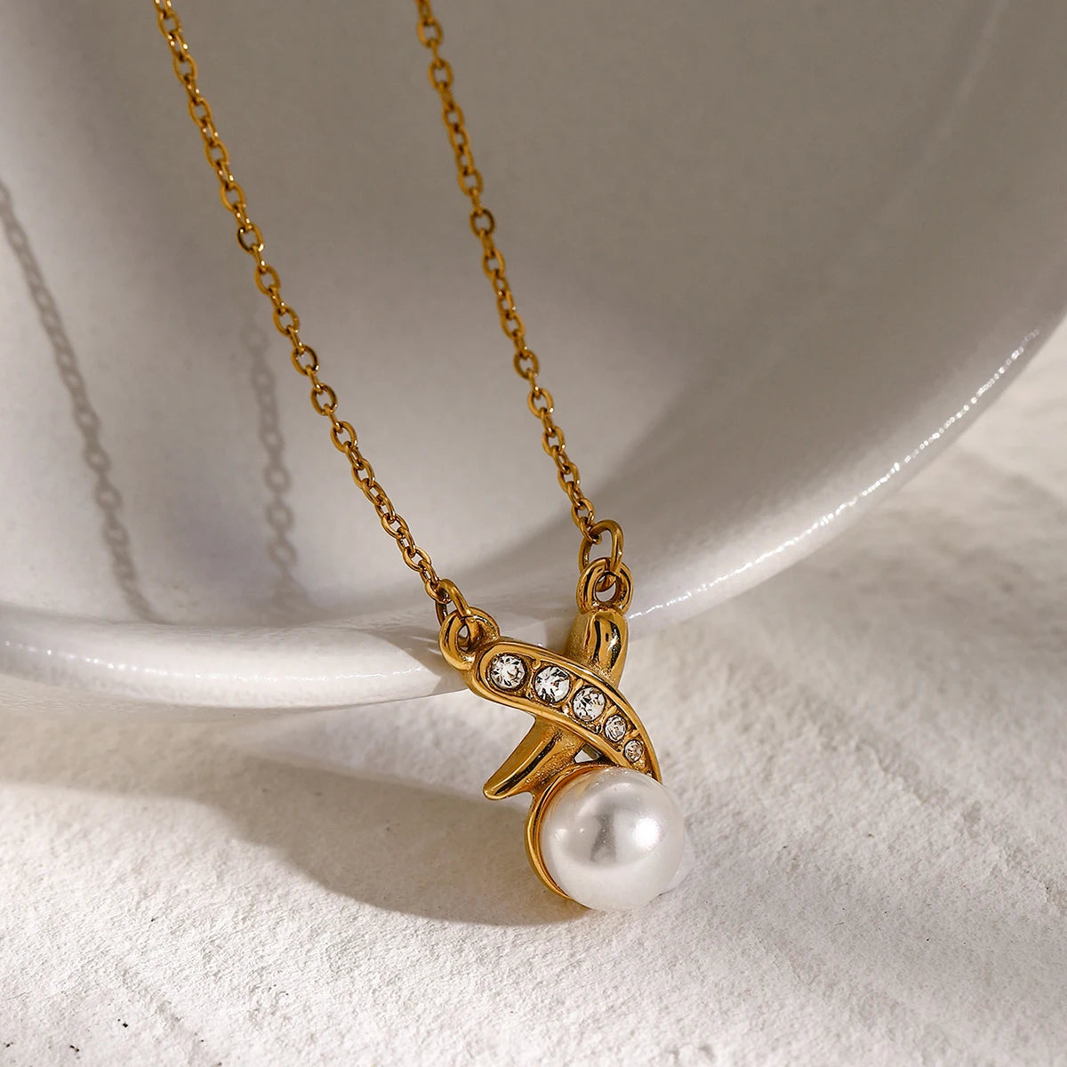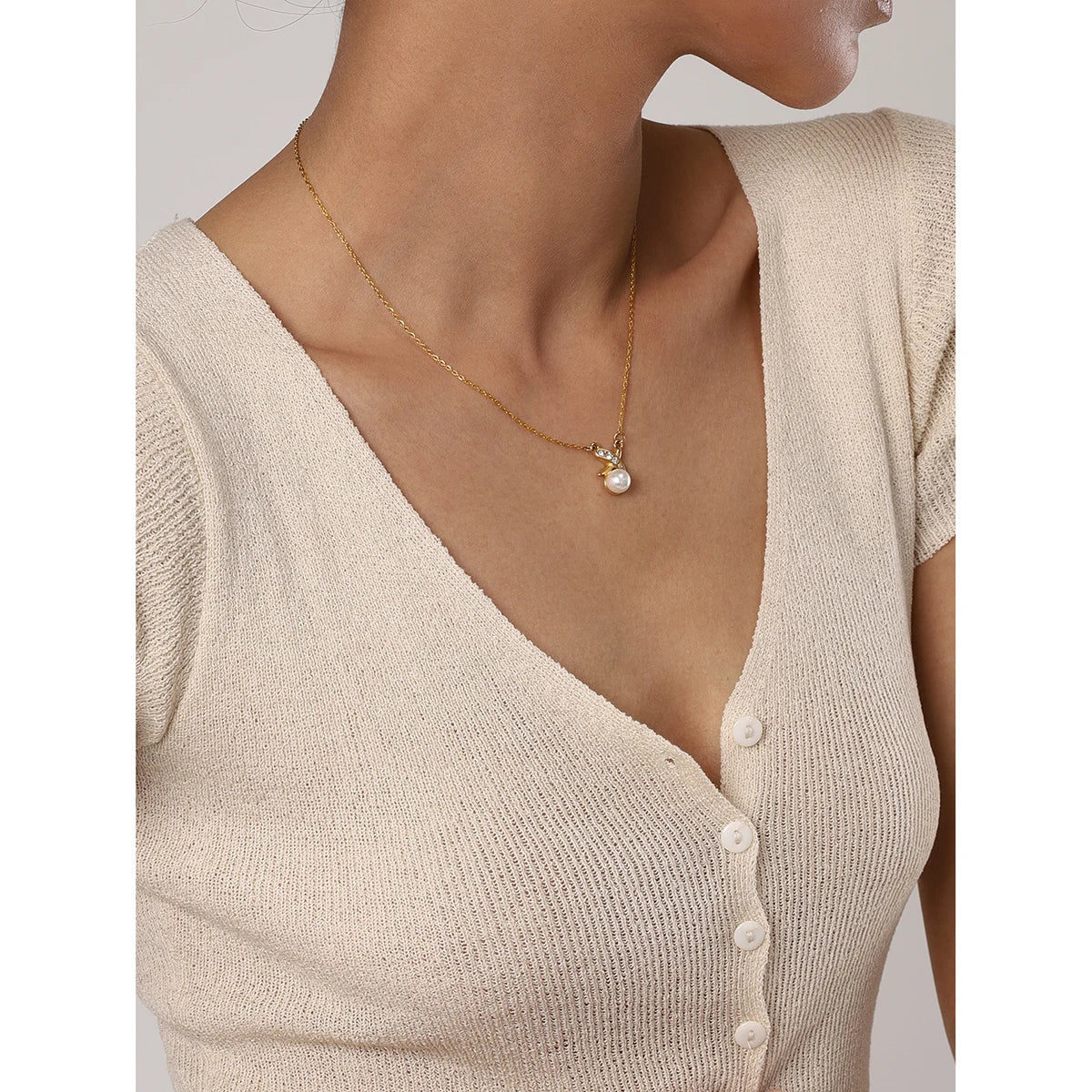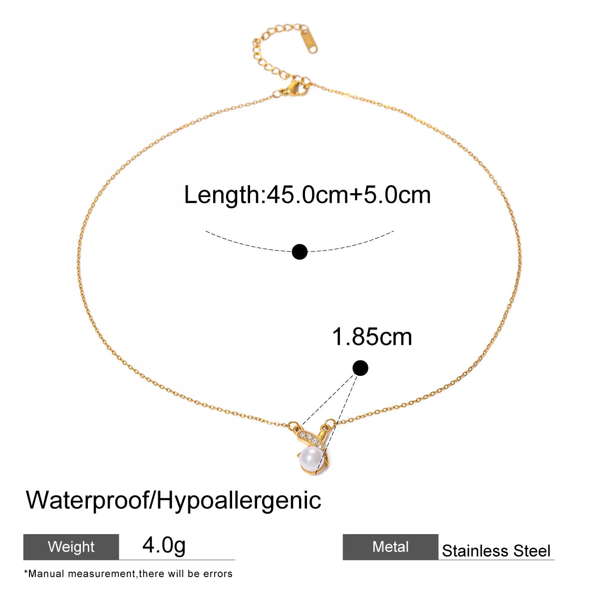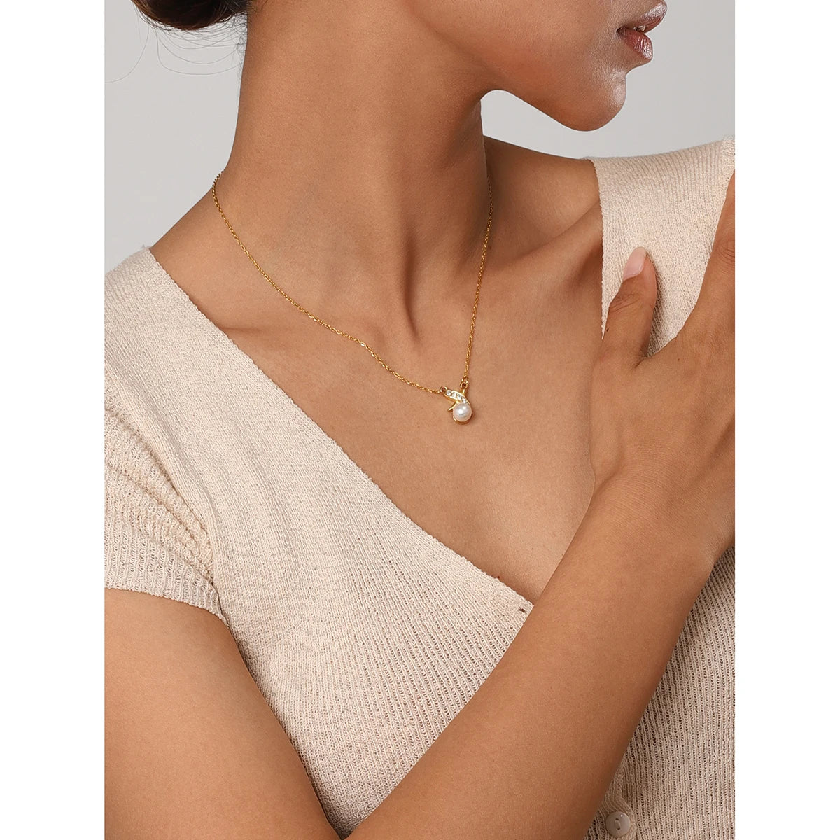 ステンレス304 低ニッケル 水に濡れても錆びにくい 18Kゴールドメッキ ネックレス パール 【YJ02152】