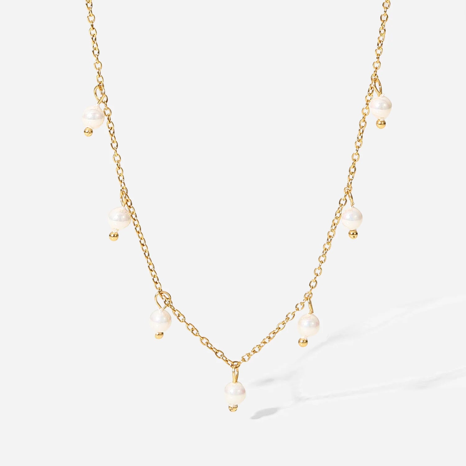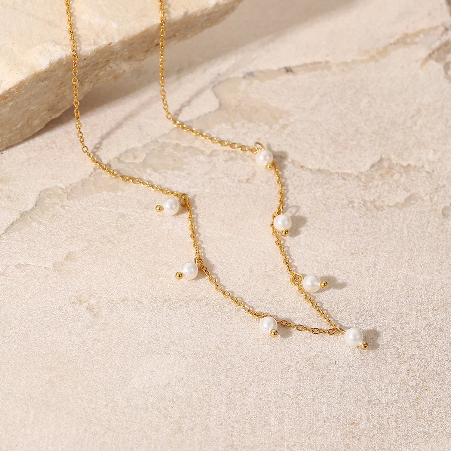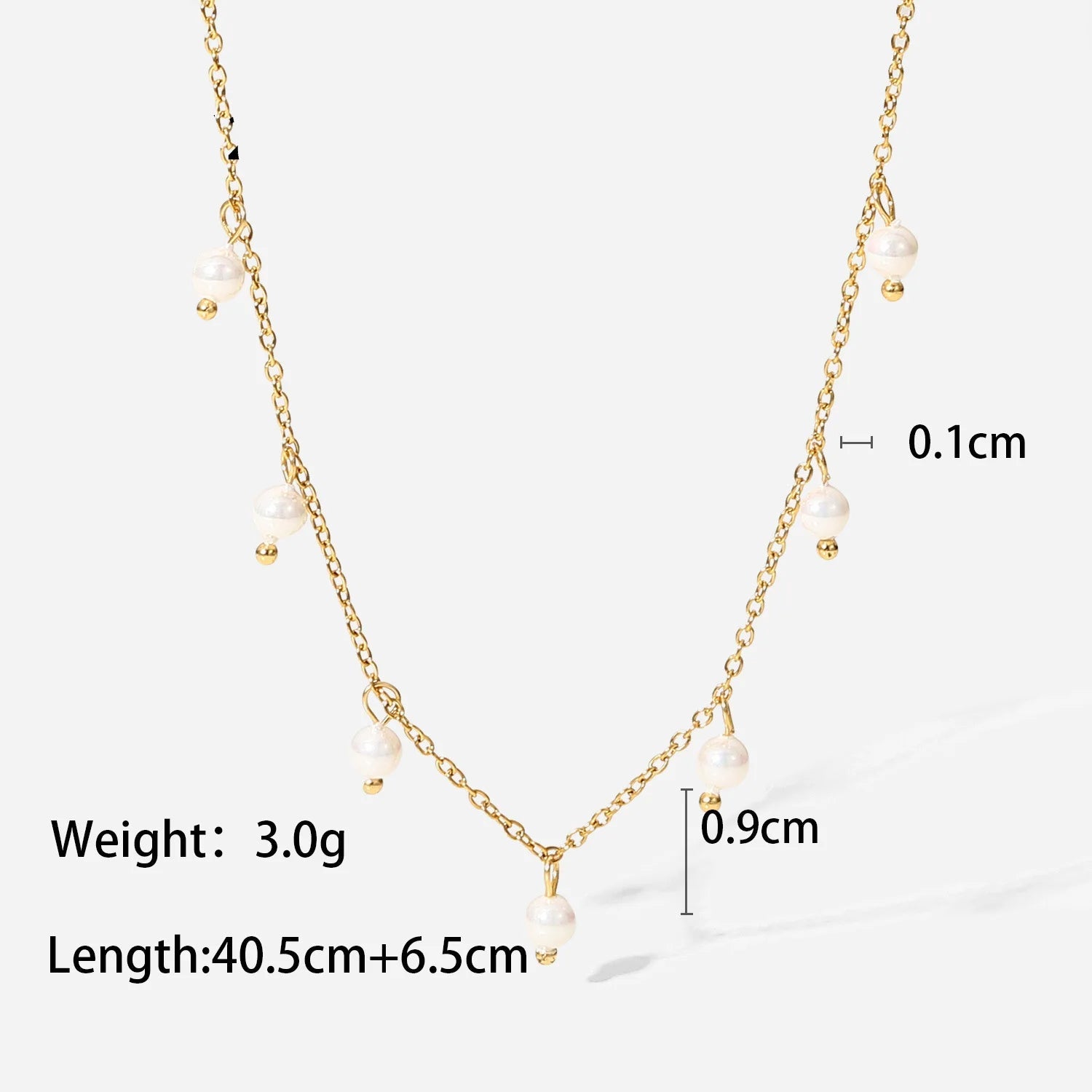 ステンレス304 低ニッケル 水に濡れても錆びにくい 18Kゴールドメッキ ネックレス パール 【YJ02169】