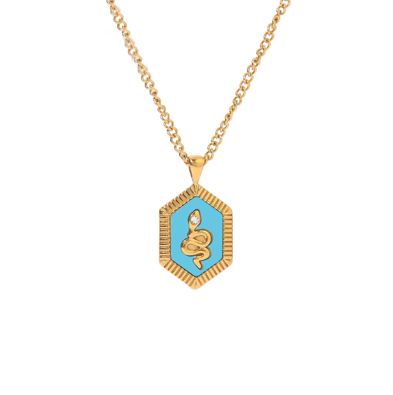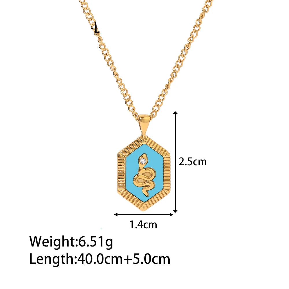 ステンレス304 低ニッケル 水に濡れても錆びにくい 18Kゴールドメッキ ネックレス 蛇 ヘビ スネーク エナメル ジルコニア 【YJ02365】