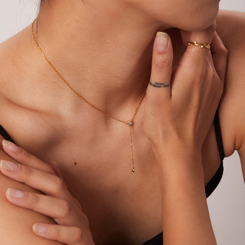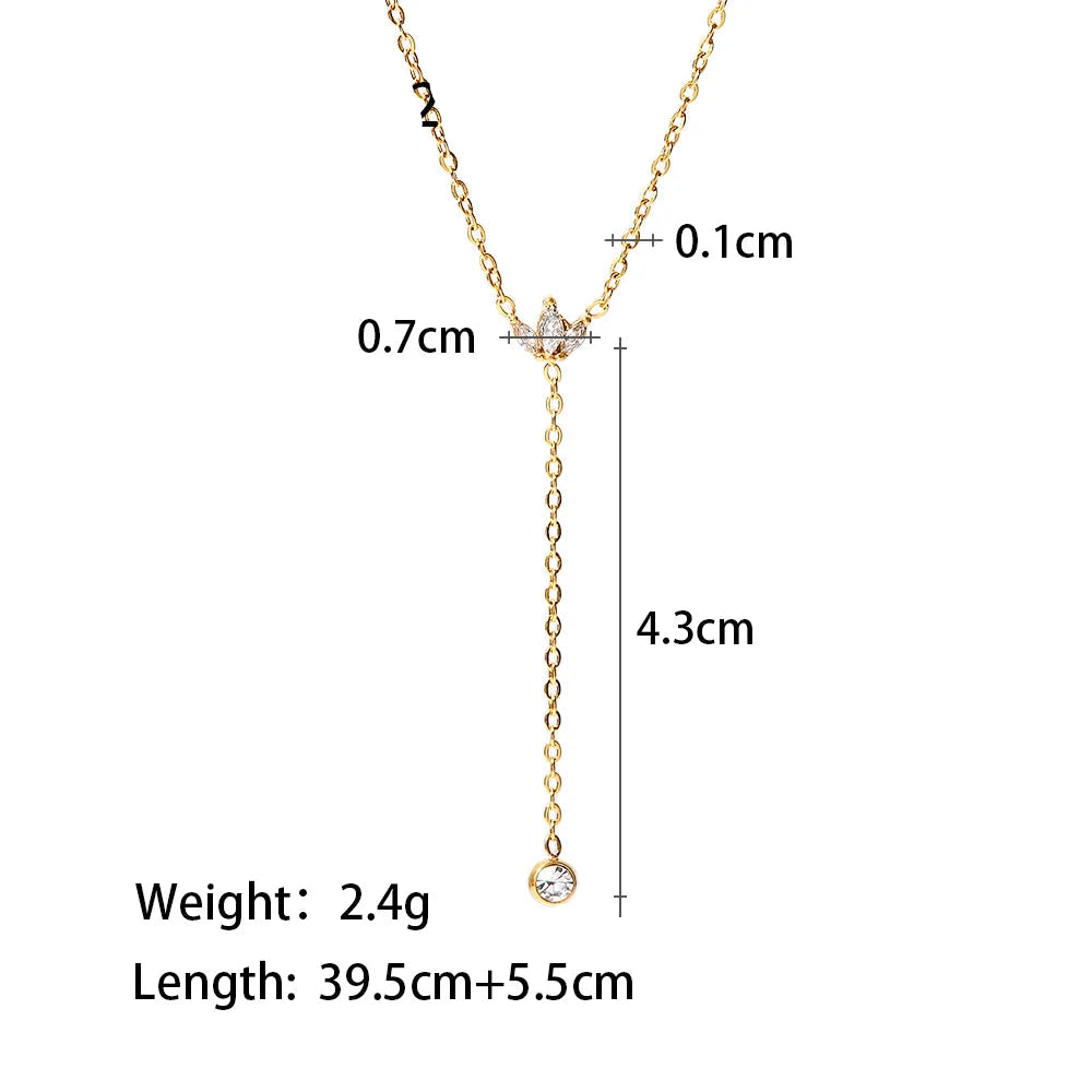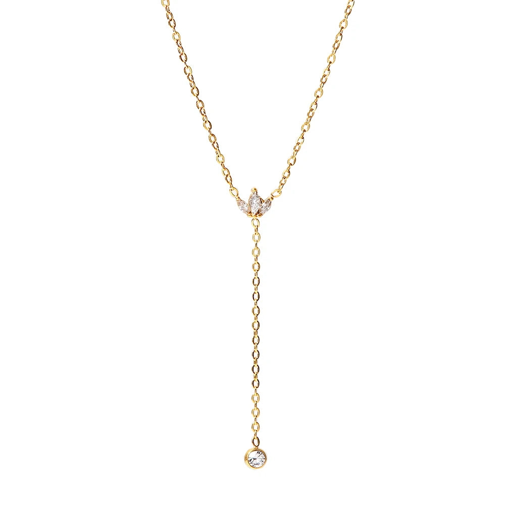 ステンレス304 低ニッケル 水に濡れても錆びにくい 18Kゴールドメッキ ネックレス ジルコニア 【YJ02430】
