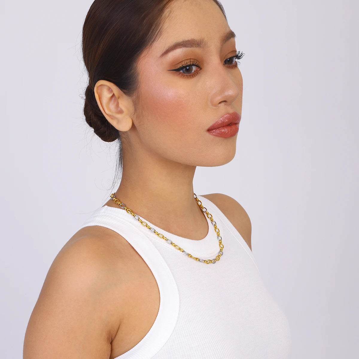 ステンレス304 低ニッケル 水に濡れても錆びにくい 18Kゴールドメッキ ネックレス チェーン 【YJ02443】