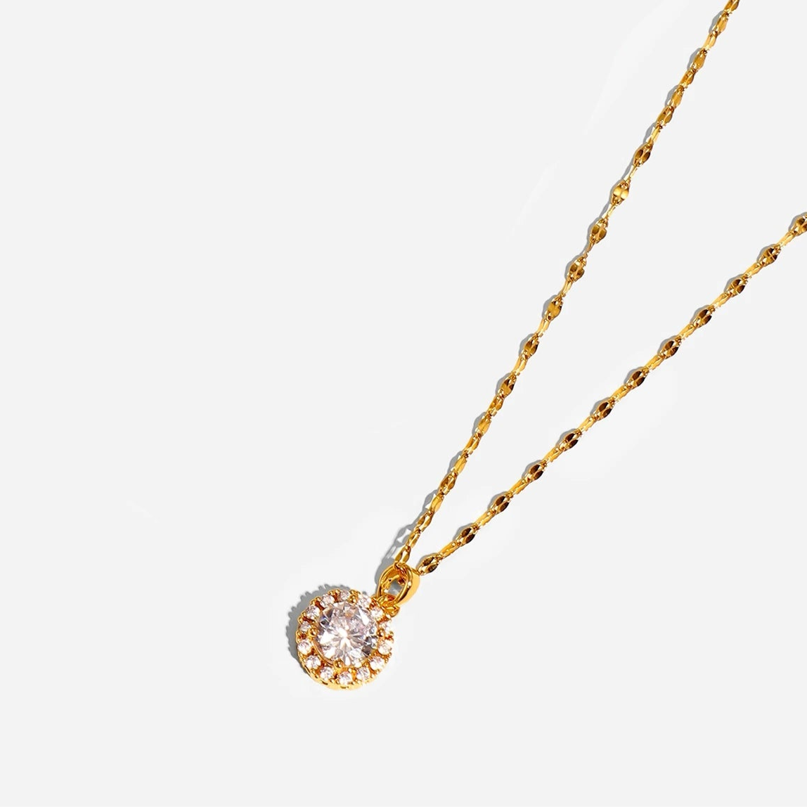 ステンレス304 低ニッケル 水に濡れても錆びにくい 18Kゴールドメッキ ネックレス チャーム ジルコニア 【YJ02570】