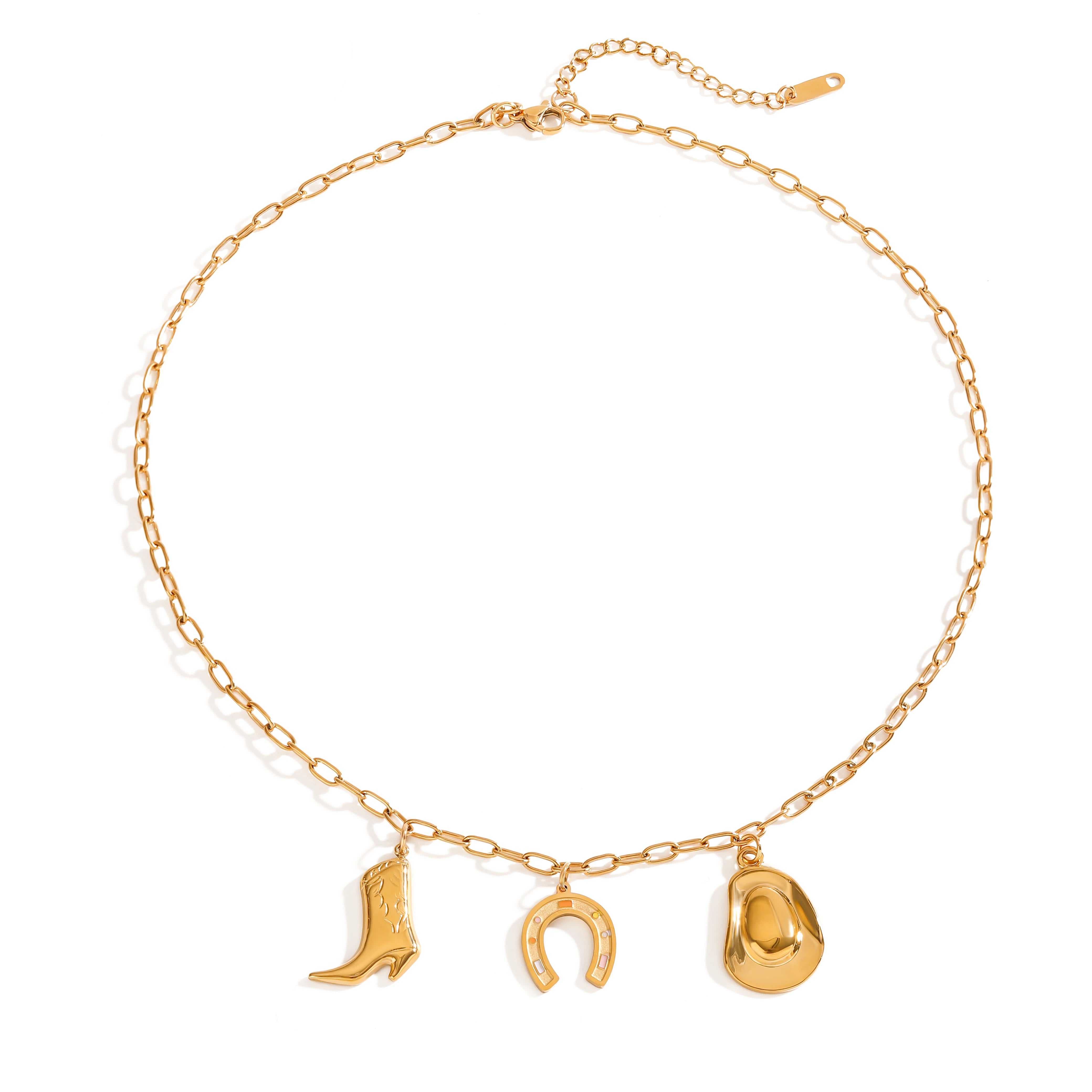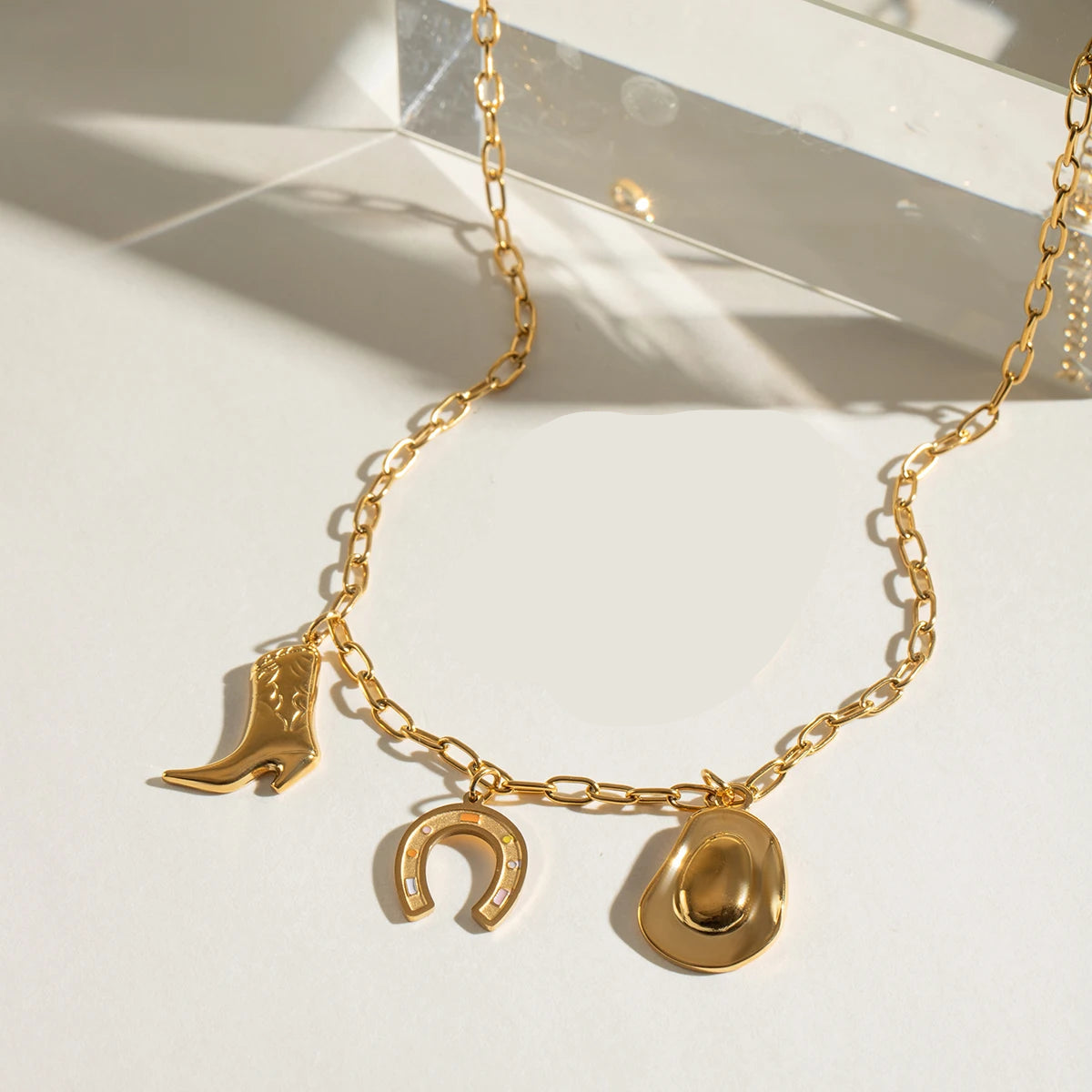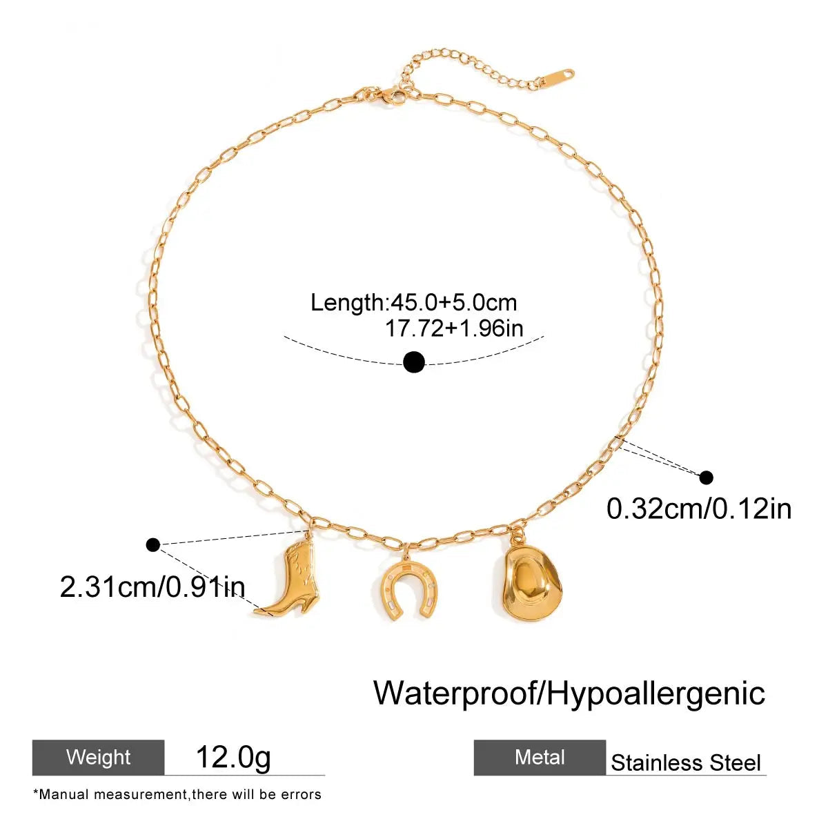 ステンレス304 低ニッケル 水に濡れても錆びにくい 18Kゴールドメッキ ネックレス チャーム ブーツ 靴 馬蹄【YJ02634】