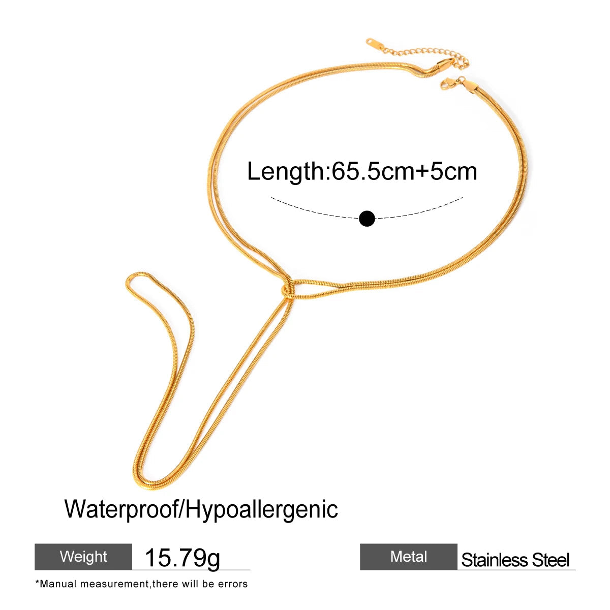 ステンレス304 低ニッケル 水に濡れても錆びにくい 18Kゴールドメッキ ネックレス タッセル チェーン 【YJ02668】