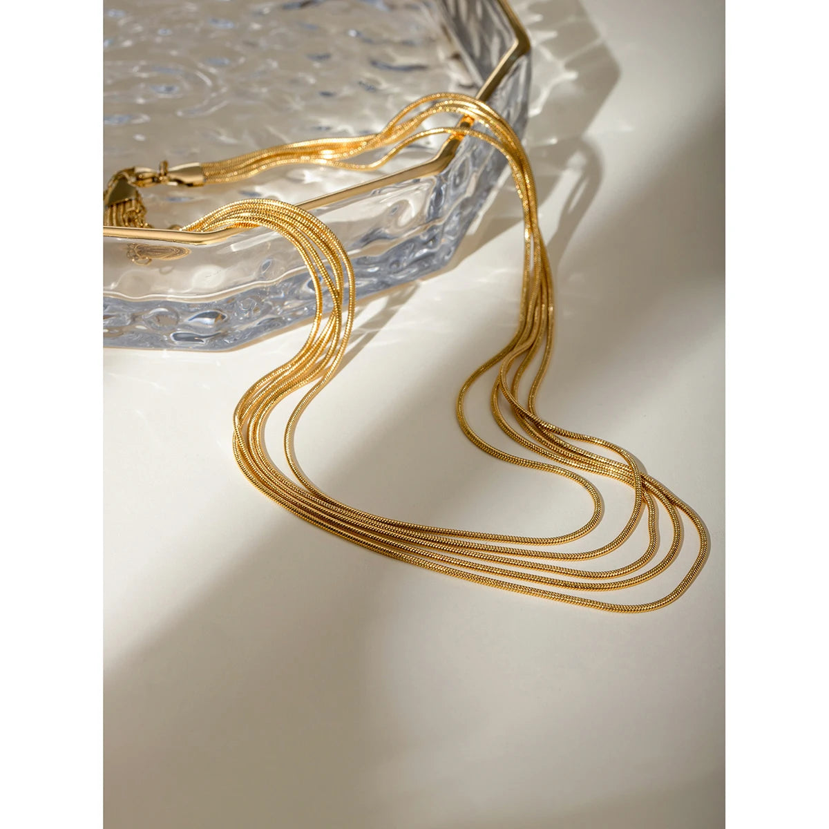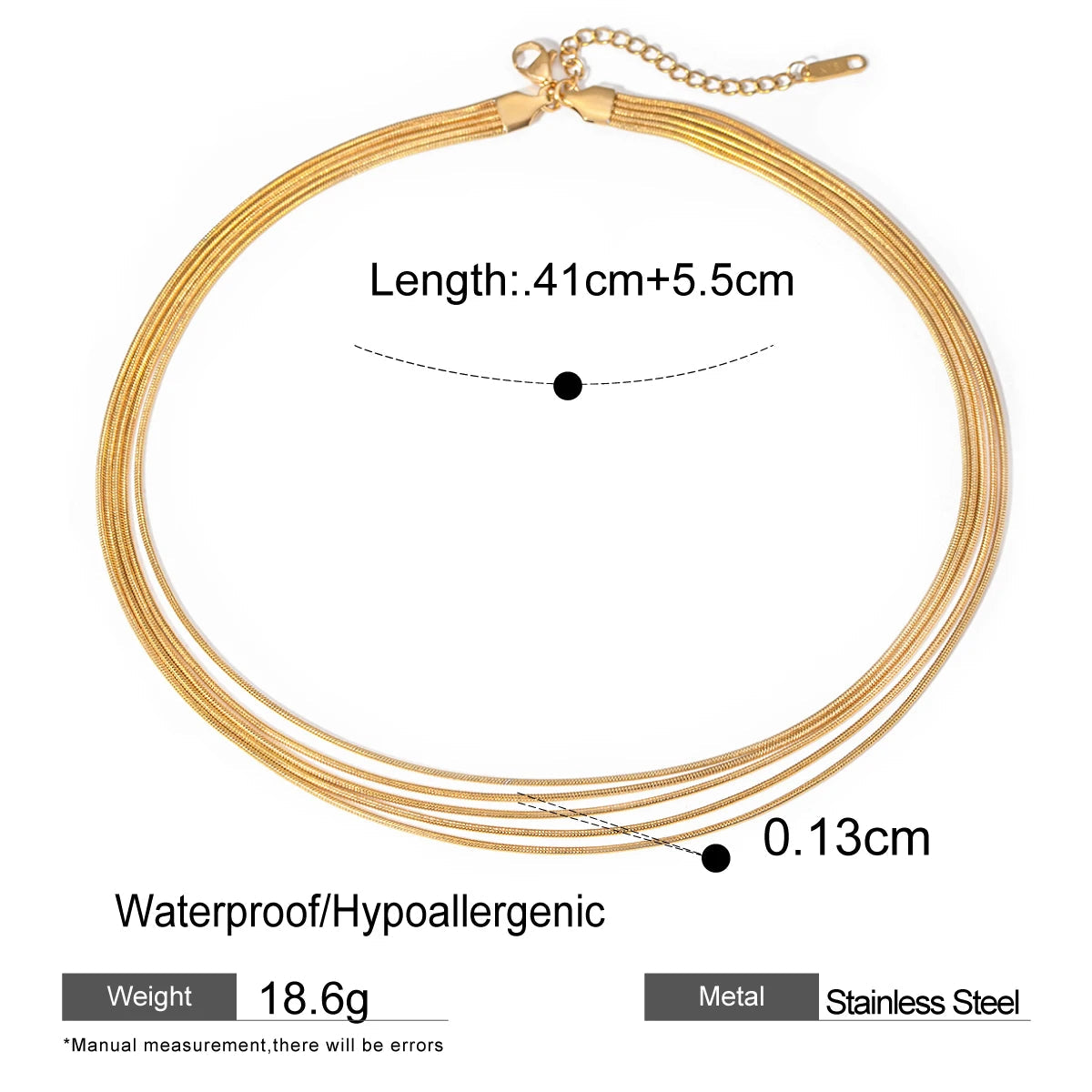 ステンレス304 低ニッケル 水に濡れても錆びにくい 18Kゴールドメッキ ネックレス チェーン 5連 【YJ02687】