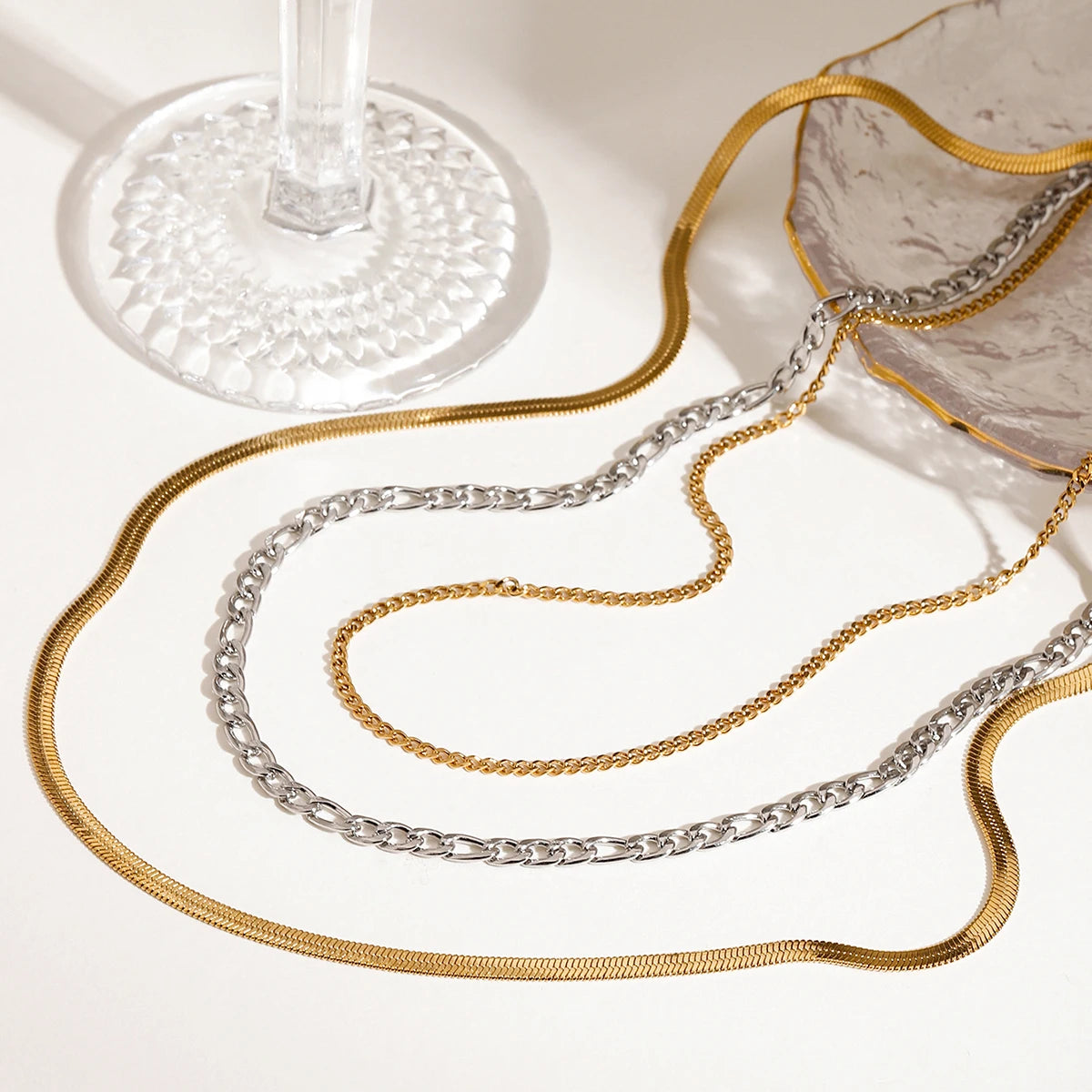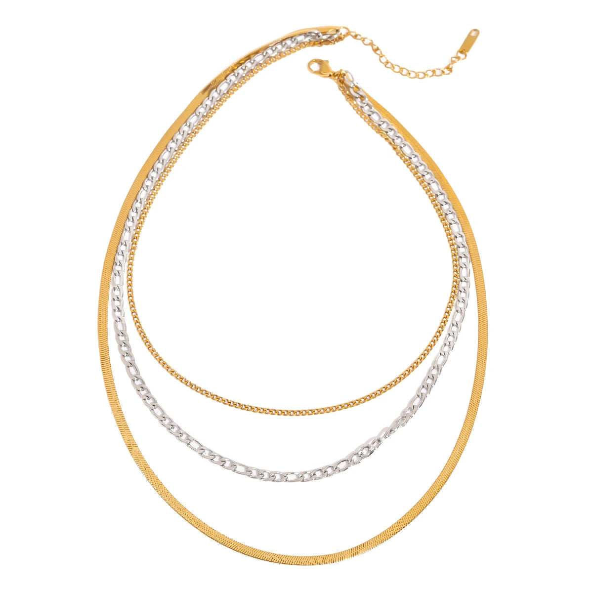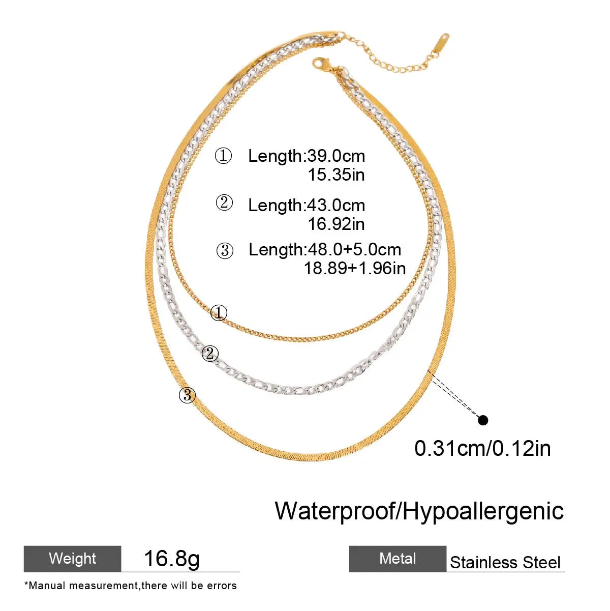 ステンレス304 低ニッケル 水に濡れても錆びにくい 18Kゴールドメッキ ネックレス チェーン 3連【YJ02722】