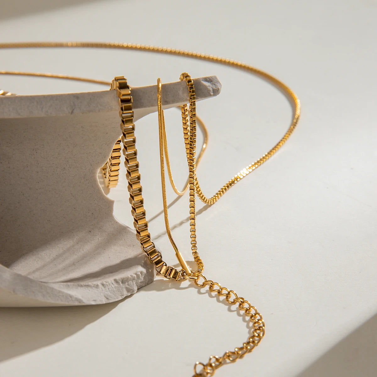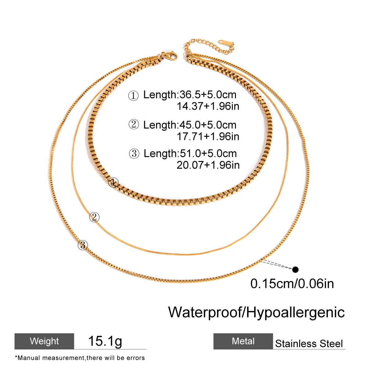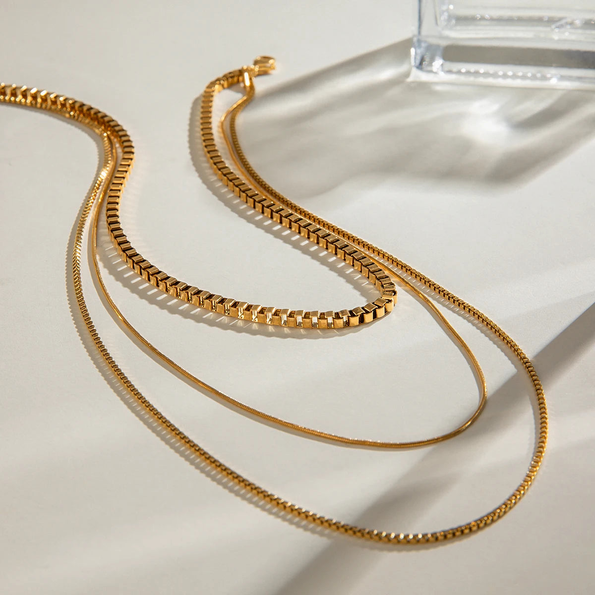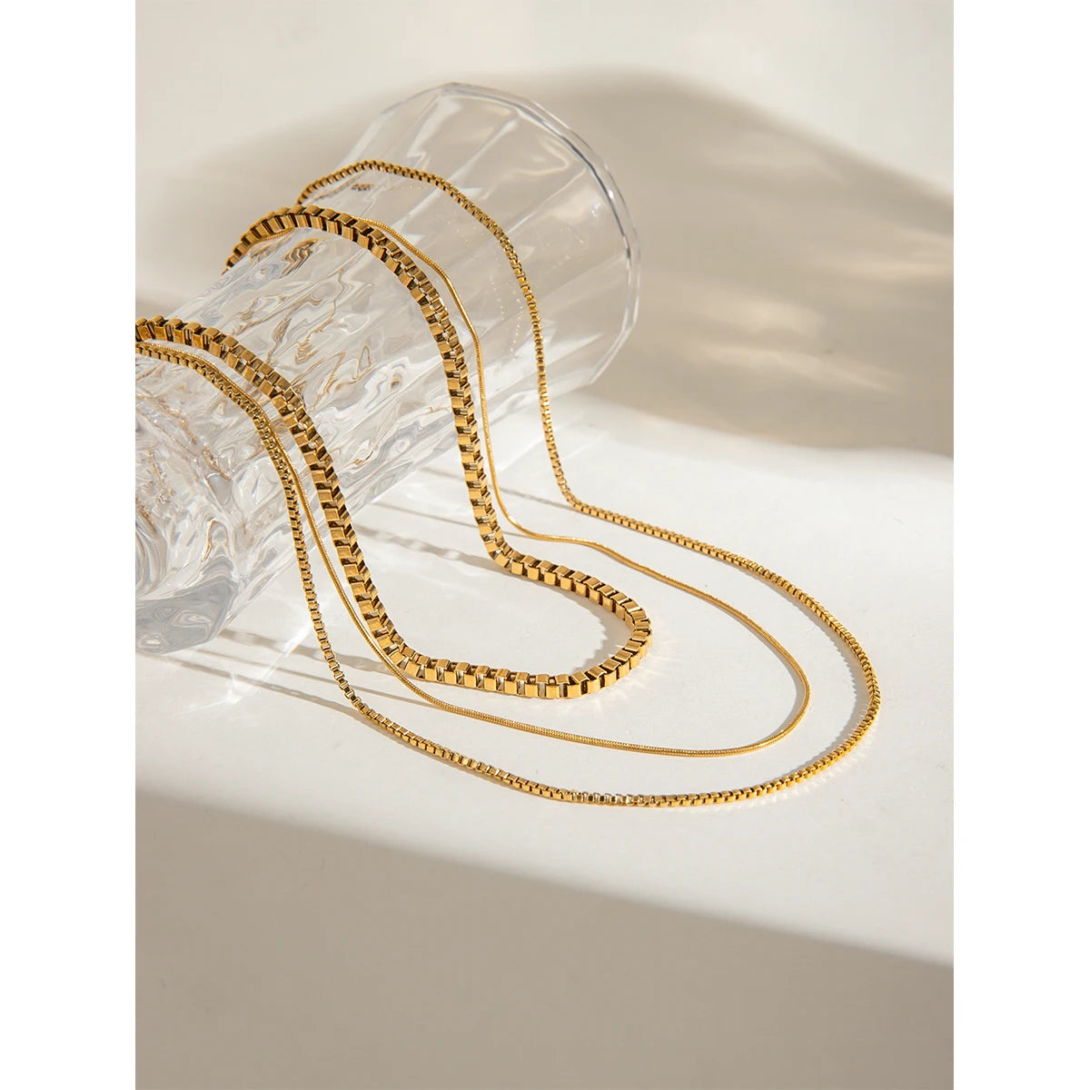 ステンレス304 低ニッケル 水に濡れても錆びにくい 18Kゴールドメッキ ネックレス スネークチェーン 3連【YJ03072】