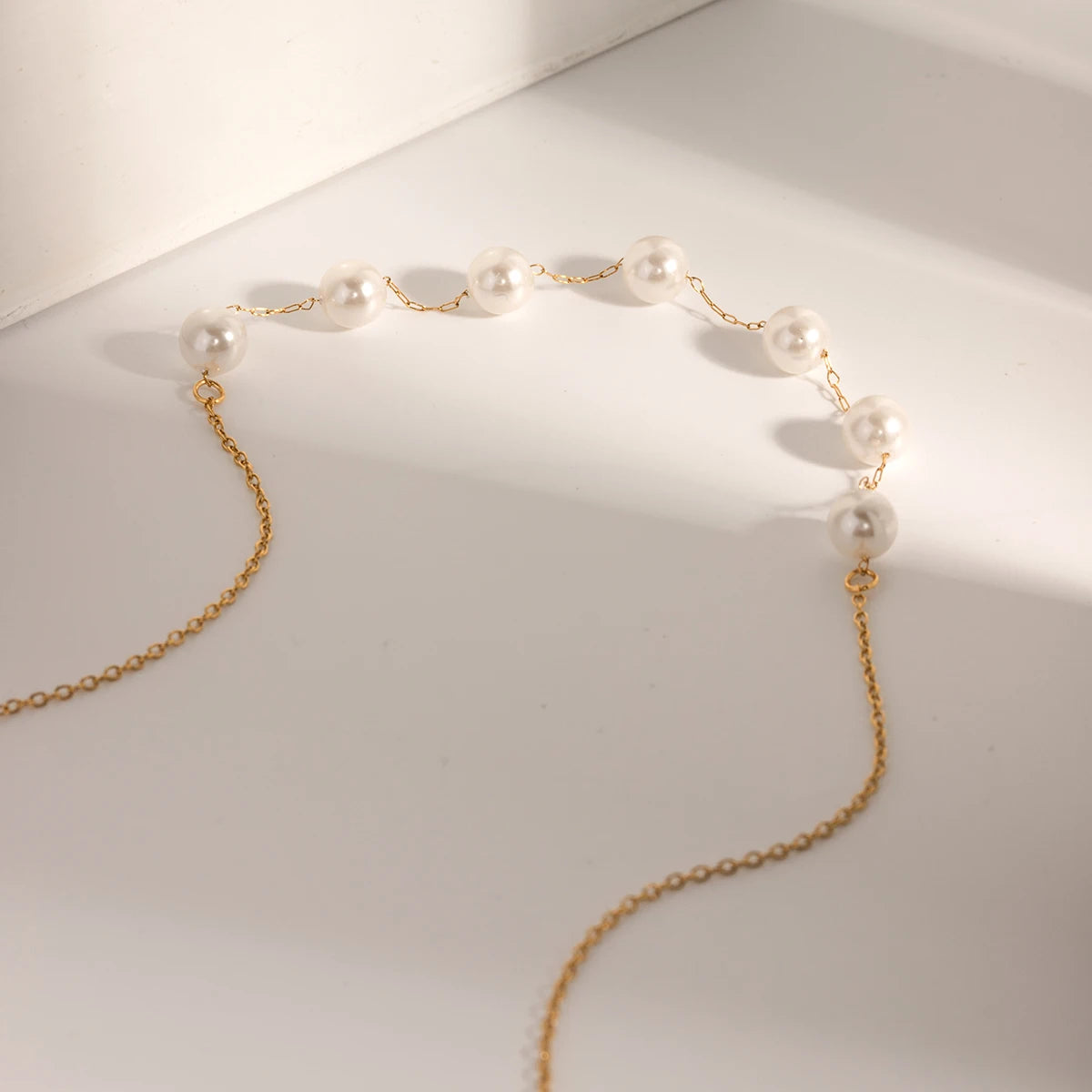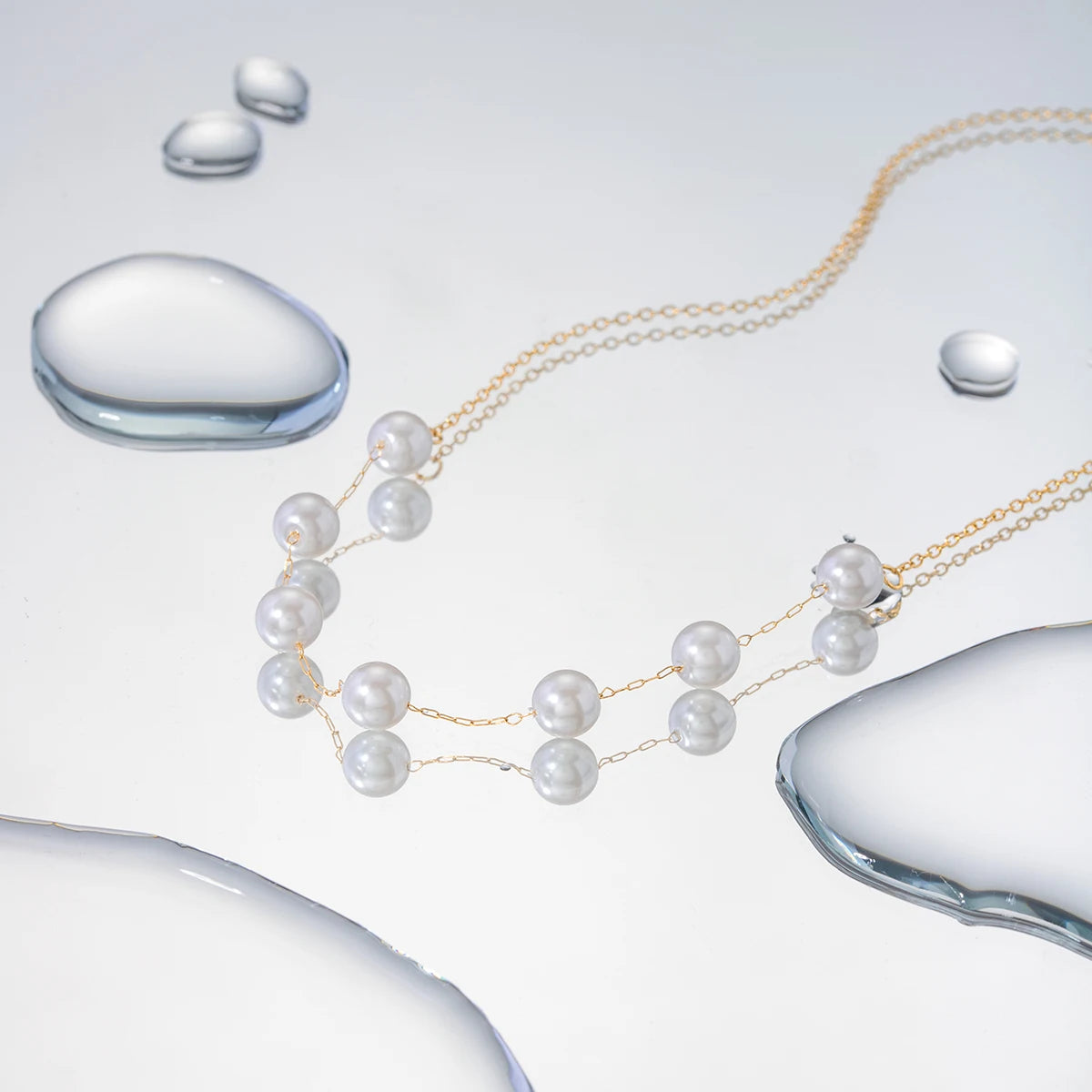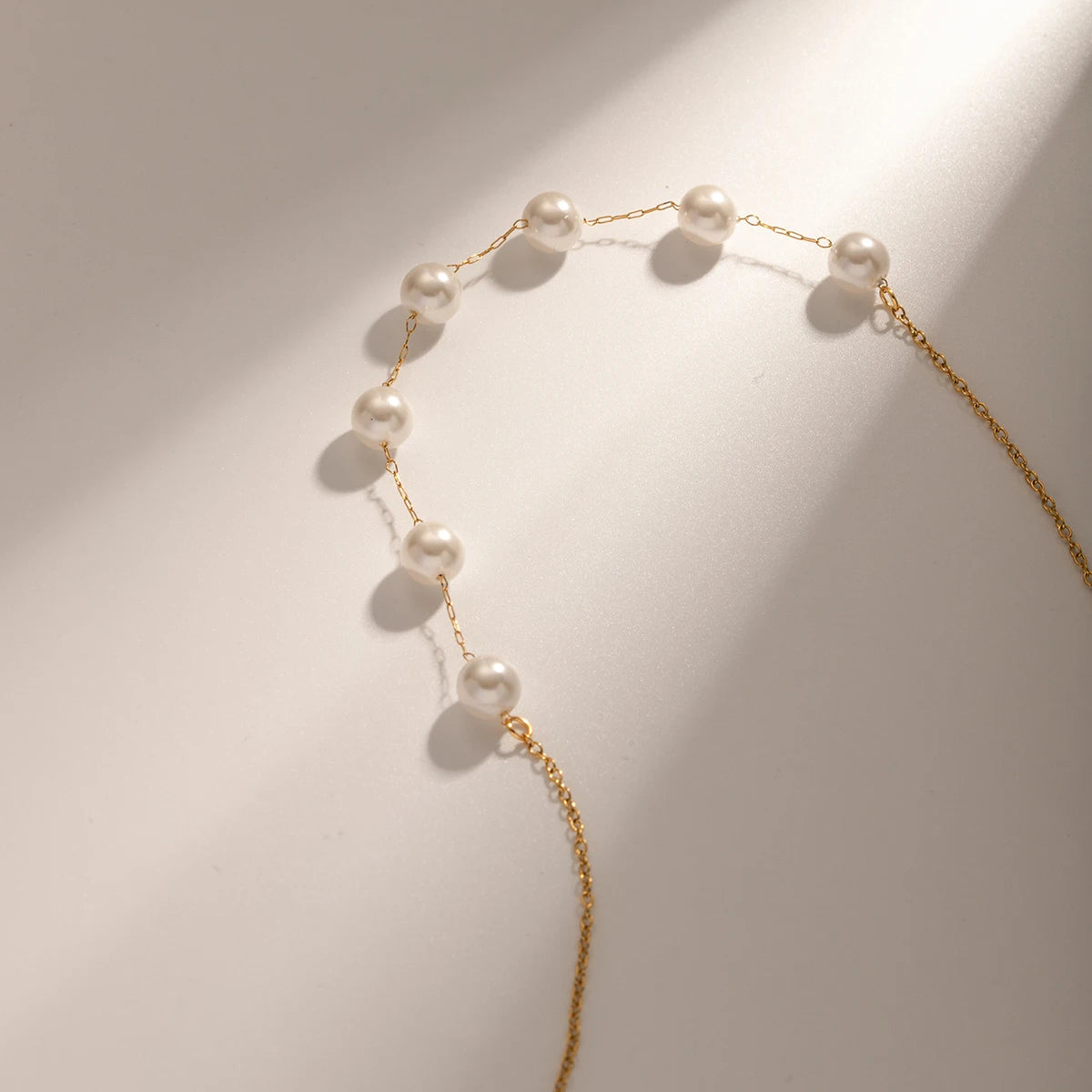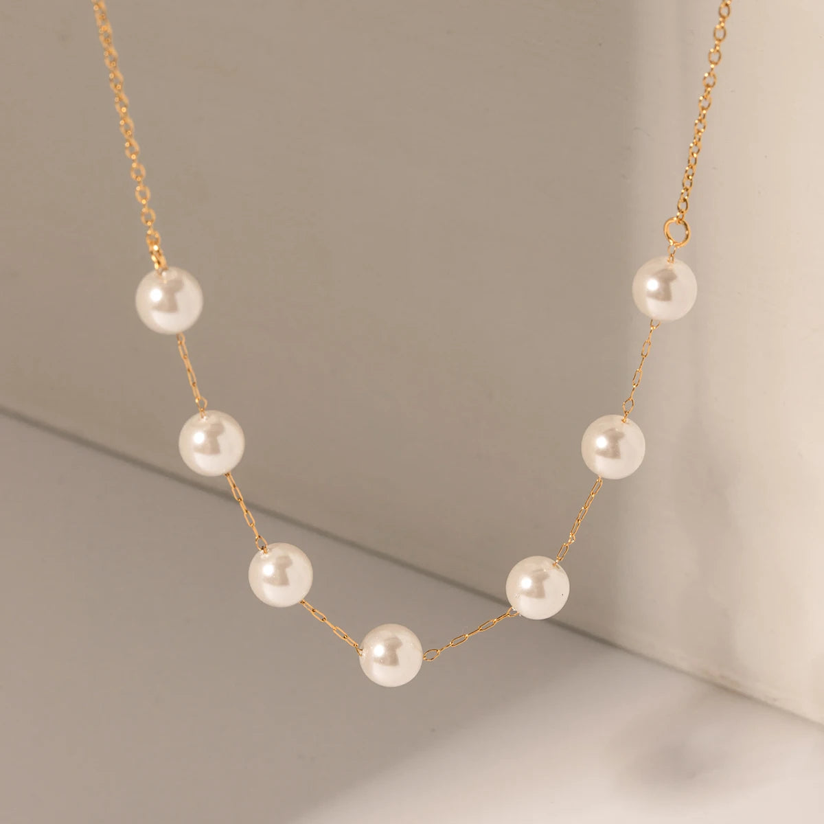 ステンレス304 低ニッケル 水に濡れても錆びにくい 18Kゴールドメッキ ネックレス パール 【YJ03387】