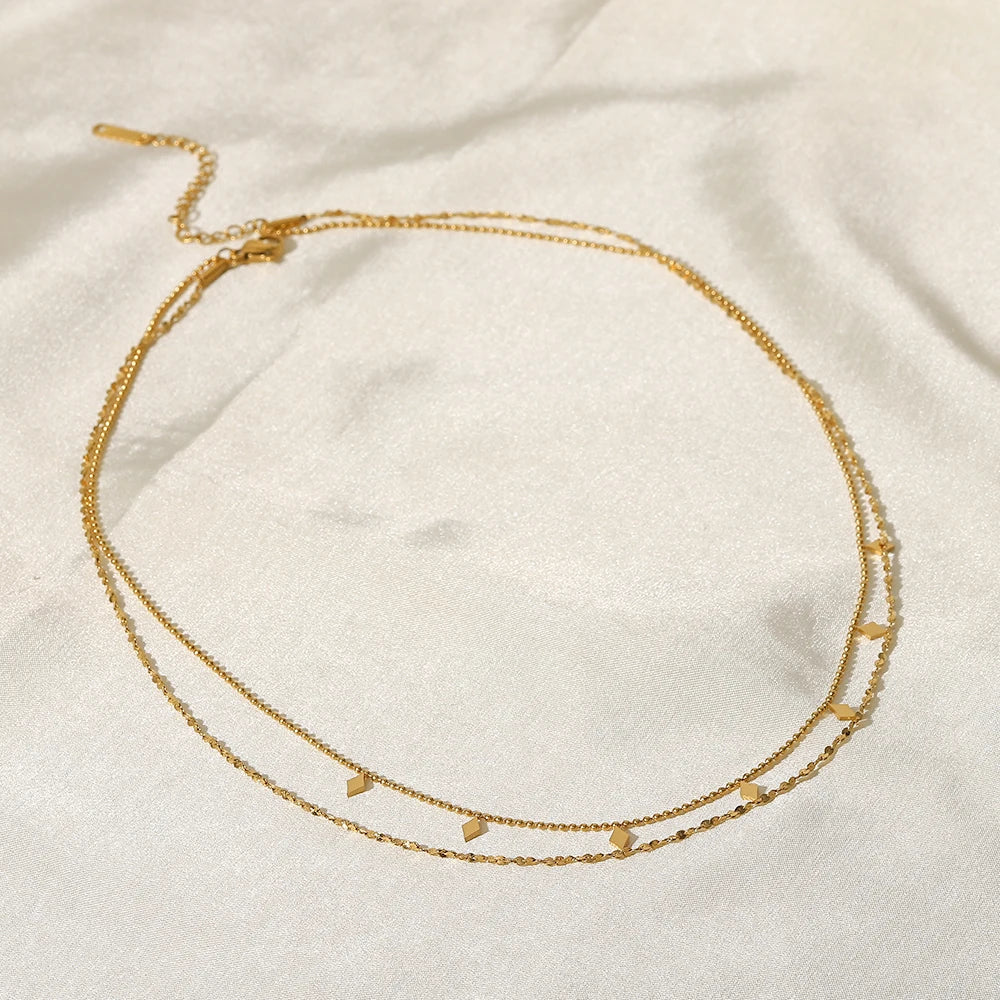 ステンレス304 低ニッケル 水に濡れても錆びにくい 18Kゴールドメッキ ネックレス 2連 チェーン 【YJ03463】