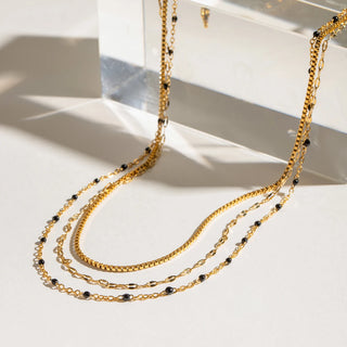 ステンレス304 低ニッケル 水に濡れても錆びにくい 18Kゴールドメッキ ネックレス 3連 チェーン【YJ02772】