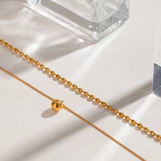 ステンレス304 低ニッケル 水に濡れても錆びにくい 18Kゴールドメッキ ネックレス 2連 チェーン ボール 【YJ02773】