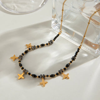 ステンレス304 低ニッケル 水に濡れても錆びにくい 18Kゴールドメッキ ネックレス 天然石風ストーン 【YJ02620】