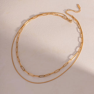 ステンレス304 低ニッケル 水に濡れても錆びにくい 18Kゴールドメッキ ネックレス 2連 チェーン 【YJ02863】