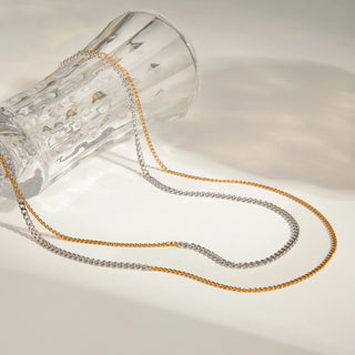 ステンレス304 低ニッケル 水に濡れても錆びにくい 18Kゴールドメッキ ネックレス 2連 チェーン 【YJ02473】