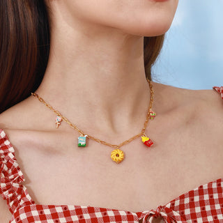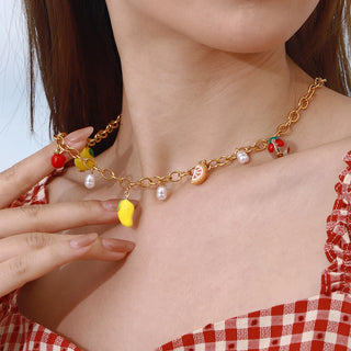 ステンレス304 低ニッケル 水に濡れても錆びにくい 18Kゴールドメッキ ネックレス チェーン エナメル 【YJ02650】