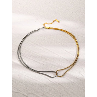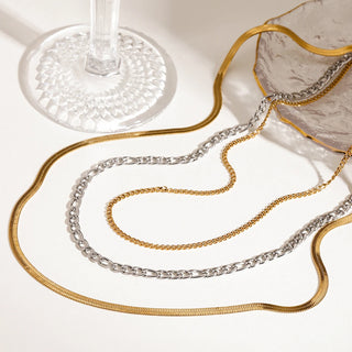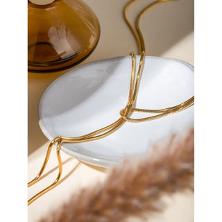 ステンレス304 低ニッケル 水に濡れても錆びにくい 18Kゴールドメッキ ネックレス 2連 スネークチェーン 【YJ02632】