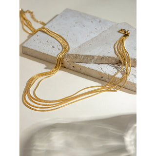 ステンレス304 低ニッケル 水に濡れても錆びにくい 18Kゴールドメッキ ネックレス チェーン 5連 【YJ02687】