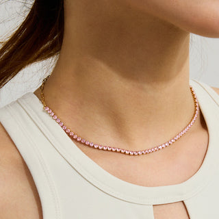 ステンレス304 低ニッケル 水に濡れても錆びにくい 18Kゴールドメッキ ネックレス クロ ジルコニア 【YJ02562】