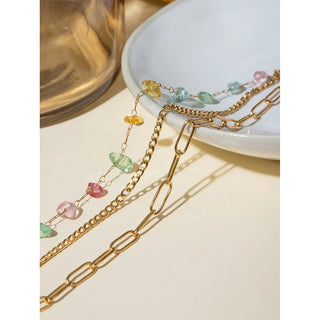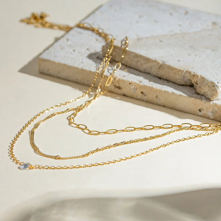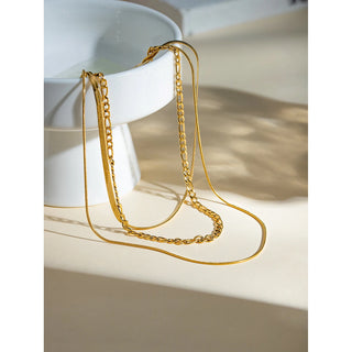 ステンレス304 低ニッケル 水に濡れても錆びにくい 18Kゴールドメッキ ネックレス 3連 チェーン 【YJ02224】