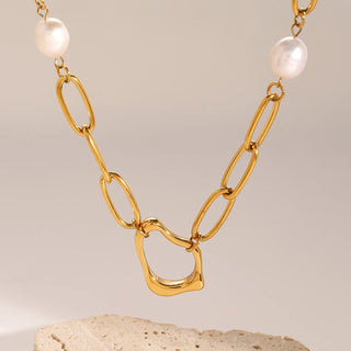 ステンレス304 低ニッケル 水に濡れても錆びにくい 18Kゴールドメッキ ネックレス バロックパール 【YJ02447】
