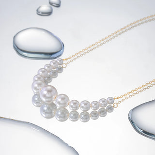ステンレス304 低ニッケル 水に濡れても錆びにくい 18Kゴールドメッキ ネックレス パール クリスタル 3連【YJ02243】