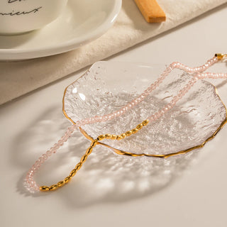 ステンレス304 低ニッケル 水に濡れても錆びにくい 18Kゴールドメッキ ネックレス クリスタル 【YJ03666】