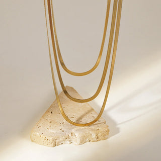 ステンレス304 低ニッケル 水に濡れても錆びにくい 18Kゴールドメッキ ネックレス チェーン 3連【YJ03521】
