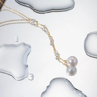ステンレス304 低ニッケル 水に濡れても錆びにくい 18Kゴールドメッキ ネックレス 2連 パール 【YJ03530】