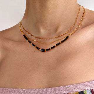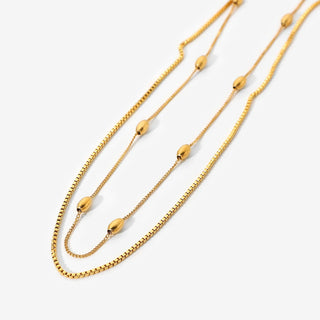 ステンレス304 低ニッケル 水に濡れても錆びにくい 18Kゴールドメッキ ネックレス 2層 チェーン【YJ03611】