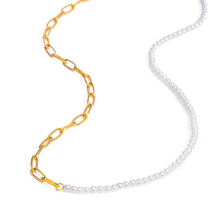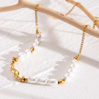ステンレス304 低ニッケル 水に濡れても錆びにくい 18Kゴールドメッキ ネックレス チェーン パール 【YJ01837】