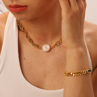 ステンレス304 低ニッケル 水に濡れても錆びにくい 18Kゴールドメッキ ネックレス チェーン パール 【YJ01828】