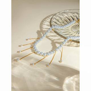 ステンレス304 低ニッケル 水に濡れても錆びにくい 18Kゴールドメッキ ネックレス タッセル パール 【YJ01652】