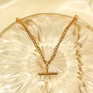 ステンレス304 低ニッケル 水に濡れても錆びにくい 18Kゴールドメッキ ネックレス Tバー 【YJ01636】
