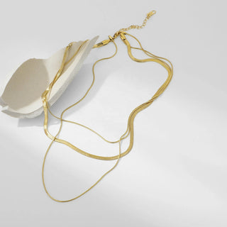 ステンレス304 低ニッケル 水に濡れても錆びにくい 18Kゴールドメッキ ネックレス 2連 スネークチェーン【YJ01676】